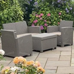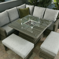 Boston – Casual Dining Set With Square Table & Firepit (Dark Grey)