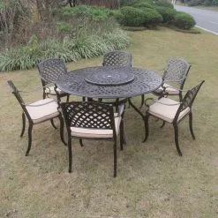 Fitzhenry – 6 Seat Set With 150cm Round Table & ‘Lazy Susan’ (Bronze)
