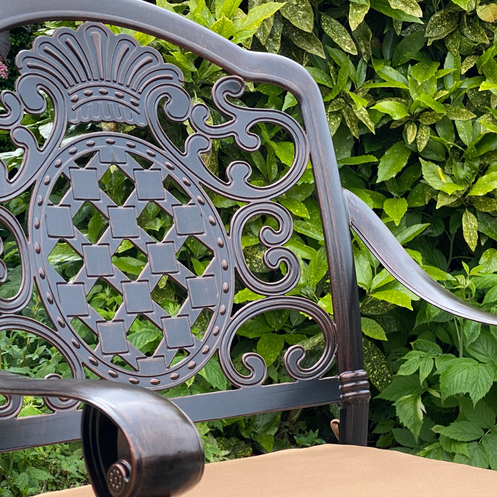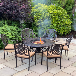 Capable of accommodating up to six (6) adults, the Apollo 6-Seater Set also comes with the added comfort of cream-coloured pads on each of the cast-aluminium armchairs to complement the luxurious Hammered Bronze finish. The set was also designed with safety in mind, with the firepit covered and secured to provide warmth and facilitate good times for friends and family alike.