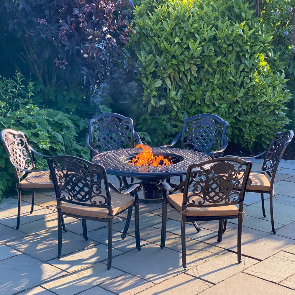 Featuring the latest design from Rathwood, the Apollo 6-Seater Set comes with a 120cm Round Table with a built-in Firepit for cosy comfort on-demand. Made from the highest-quality cast alumunium, the Apollo Range offers superior weatherproof performance without sacrificing style and comfort.