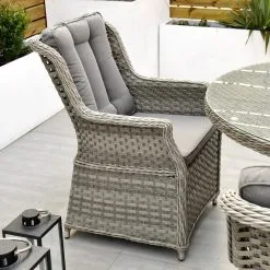 Be it fine dining or a casual alfresco morning coffee, the Bali Rattan 6 Seat Dining Set brings a luxury, durable and sustainable addition to your garden or patio that you can enjoy for many years to come. The high-back chair provides optimum support and comfort while still looking stylish.