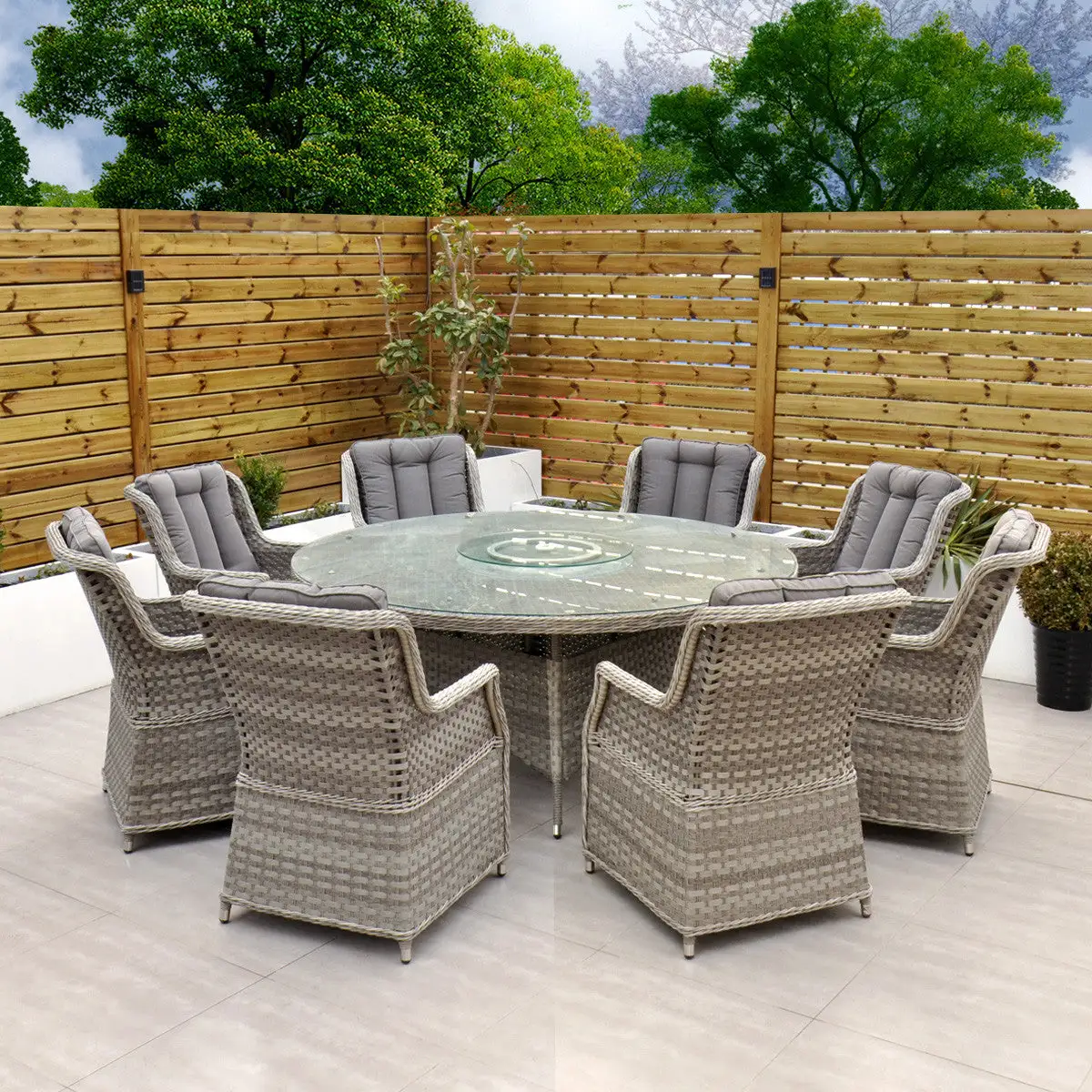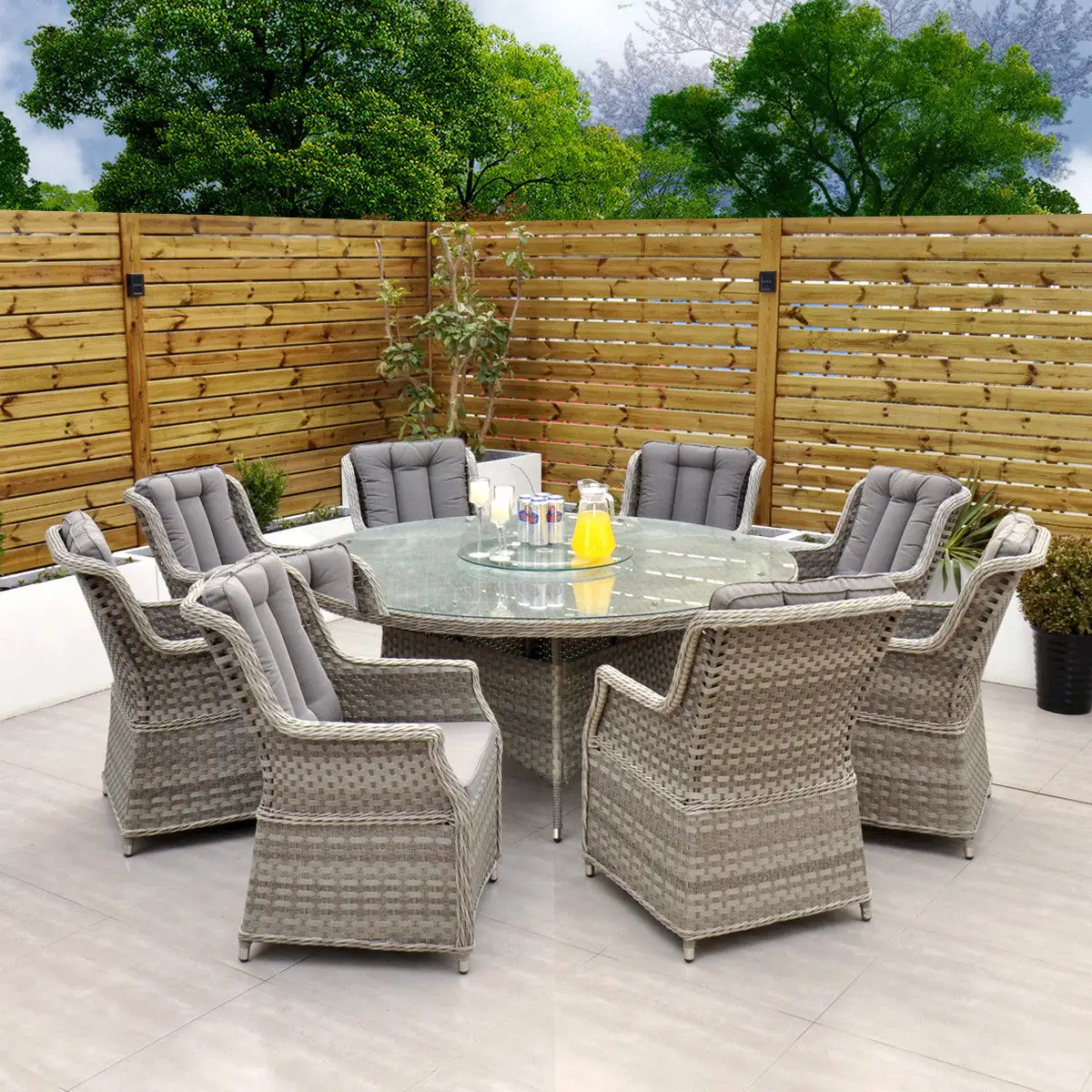 Be it fine dining or a casual alfresco morning coffee, the Bali Rattan 8 Seat Dining Set brings a luxury, durable and sustainable addition to your garden or patio that you can enjoy for many years to come. The high-back chair provides optimum support and comfort while still looking stylish.
