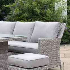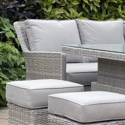 This would be stunning on any decking or patio area. Made from the highest grade rattan and woven around a cast aluminium frame, this set will not rust and is fine to be left outdoors. There is little to no maintenance on this set making it the perfect addition to your home!
