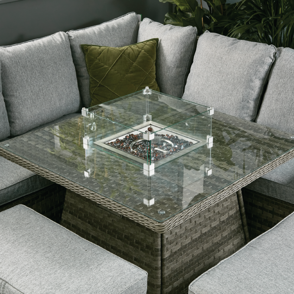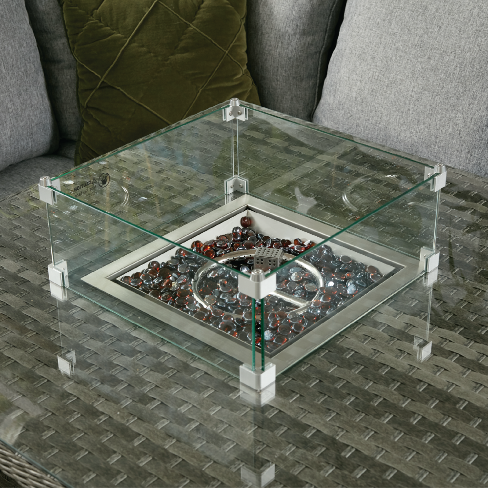 - Tempered Glass Tabletop With Firepit