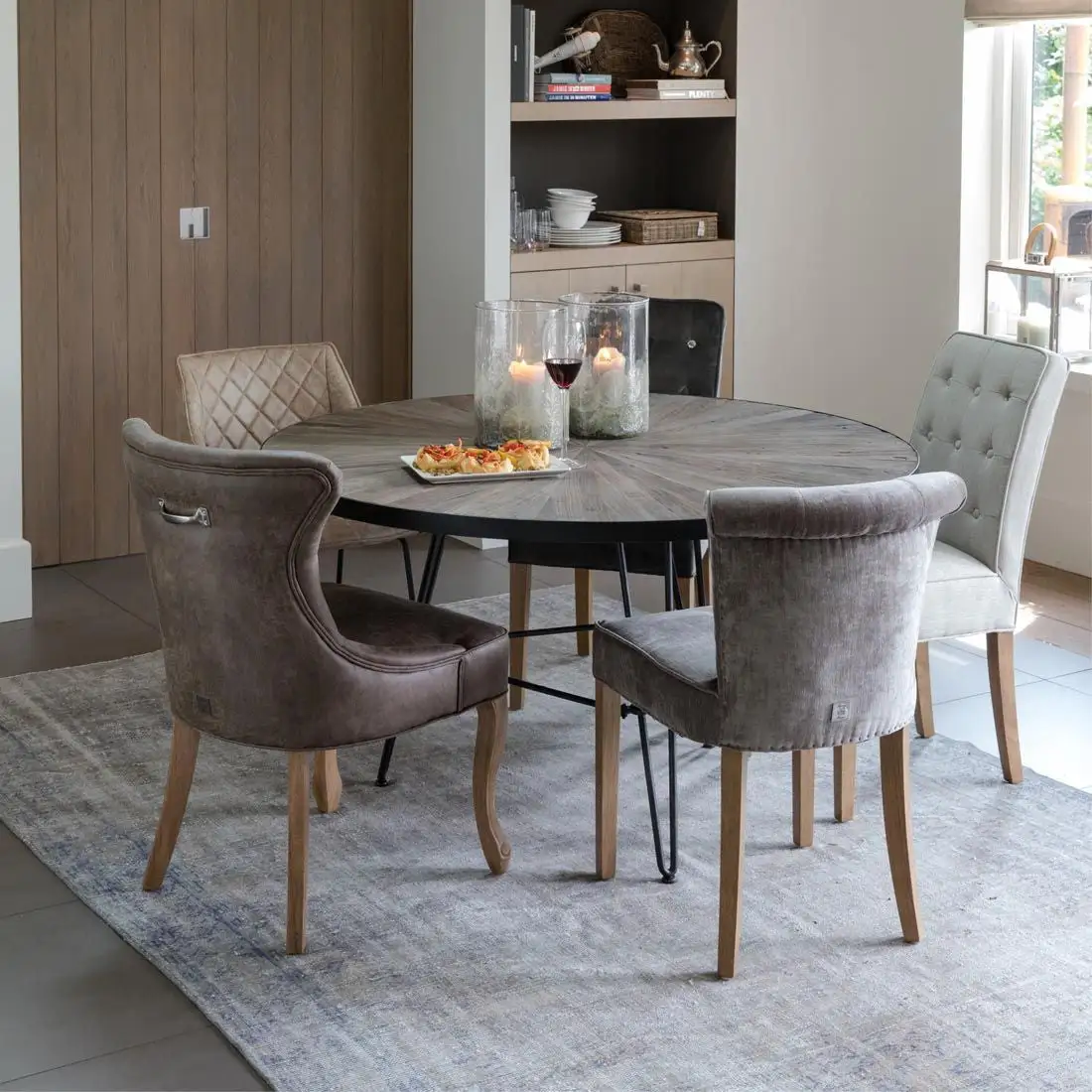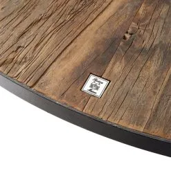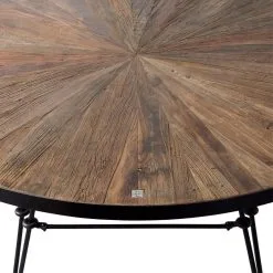 This beautiful, round dinner table is a real eye-catcher in your dining room. The table has an industrial yet warm appearance due to the combination of metal and recycled elm wood. The wood is precisely inlaid by hand as a mosaic, pure craft! Place several chairs around the table and let it form a beautiful whole together.