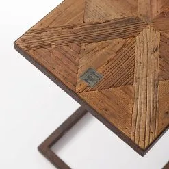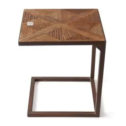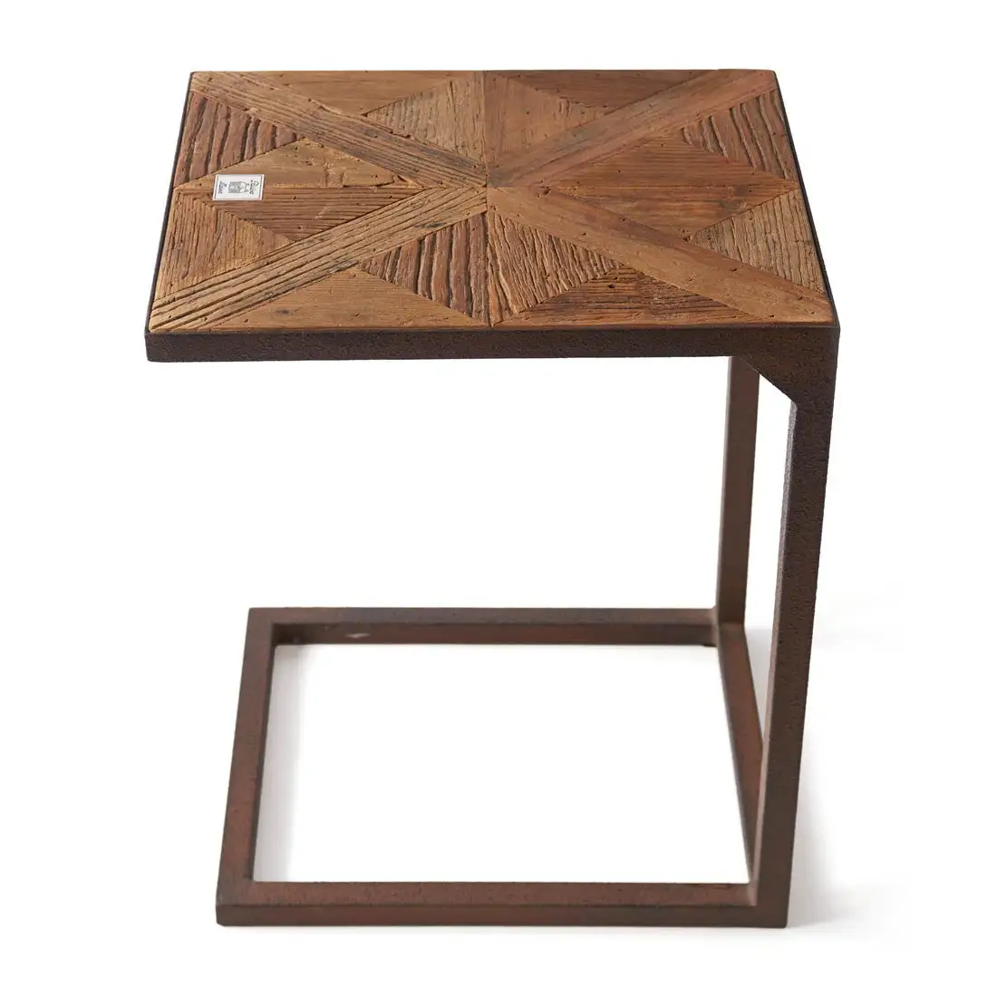 This handy table can be pulled up to any sofa; the inlay is based on the Chassigny series. The top is made from old wood while the base is made from metal with a vintage look.