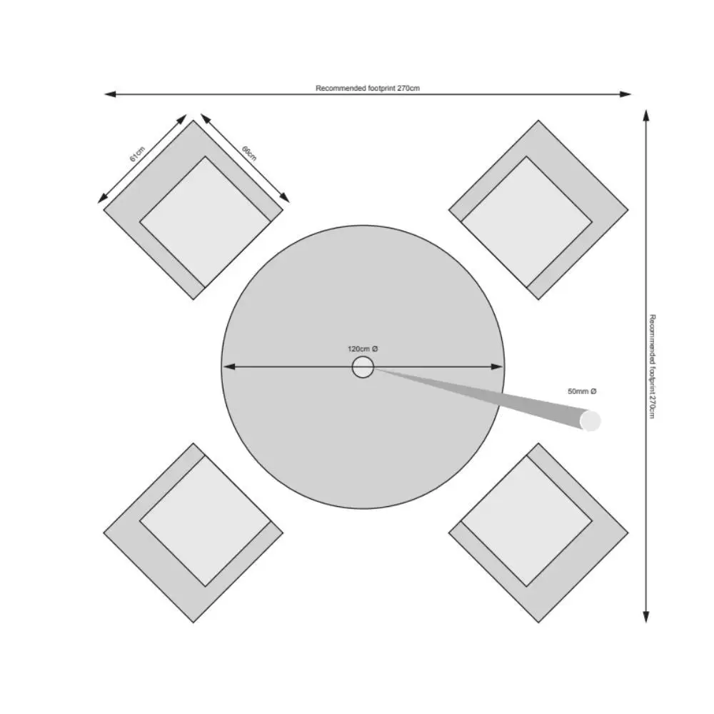 Table Dimensions : Width 120cm x Depth 120cm x Height 75cm