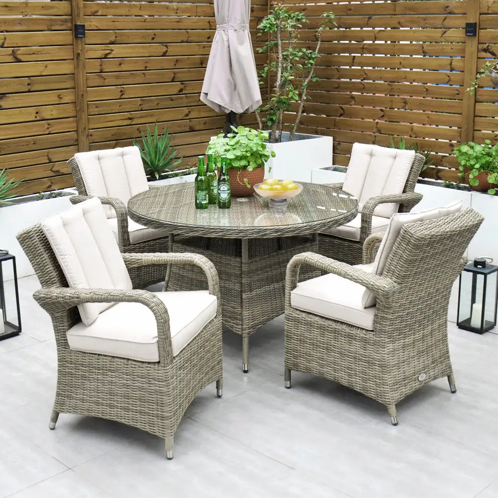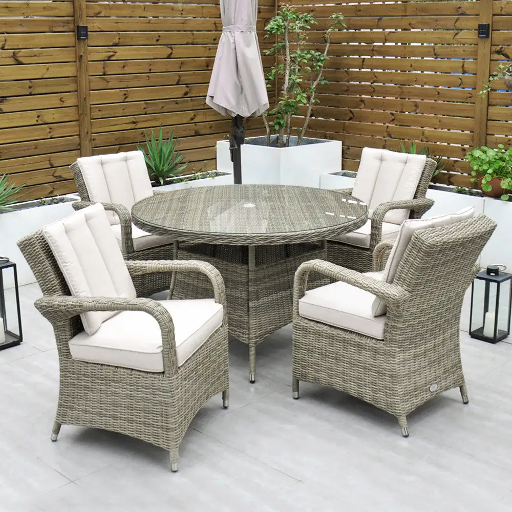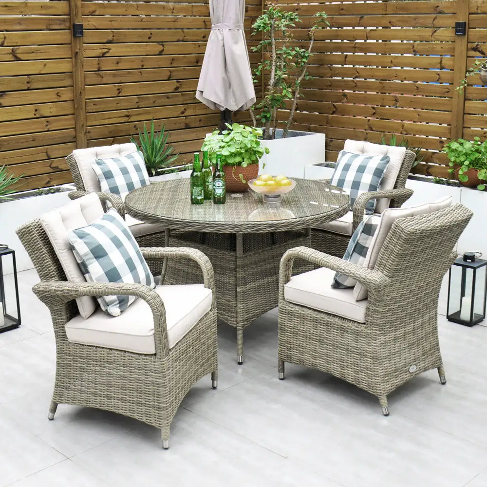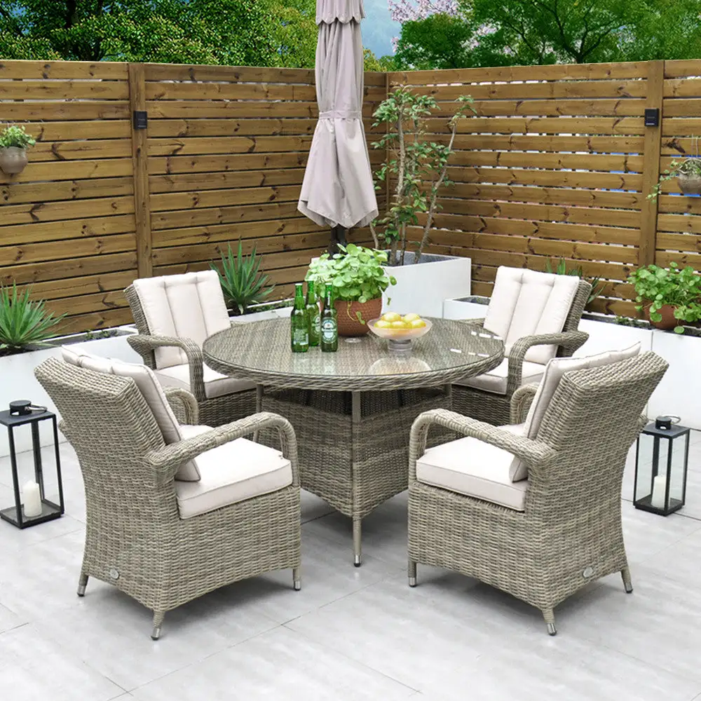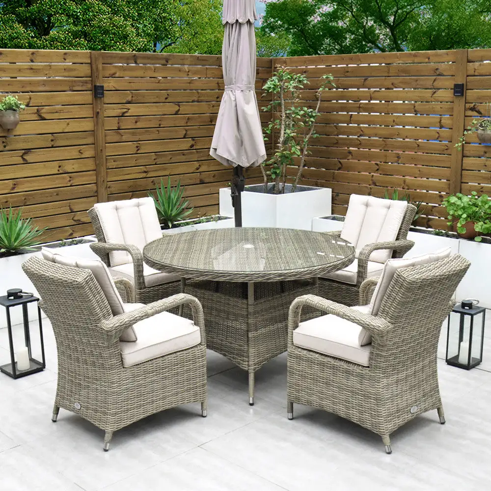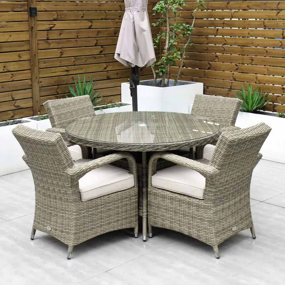 Made from the highest grade of rattan, the Chester 4-Seater set is extremely comfortable. This set is neat while still allowing ample space for 4 people. The modern design combines comfort and style and is the perfect outdoor dining set. Its cast aluminium frame makes this set rust-free and ensures you will enjoy many years of dining outdoors.