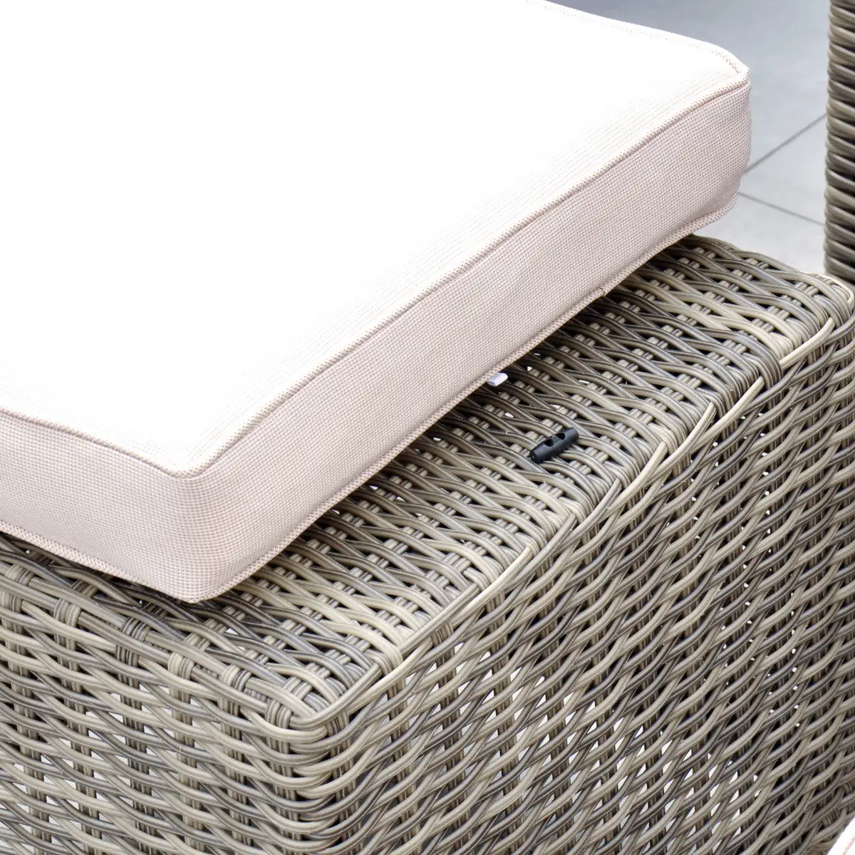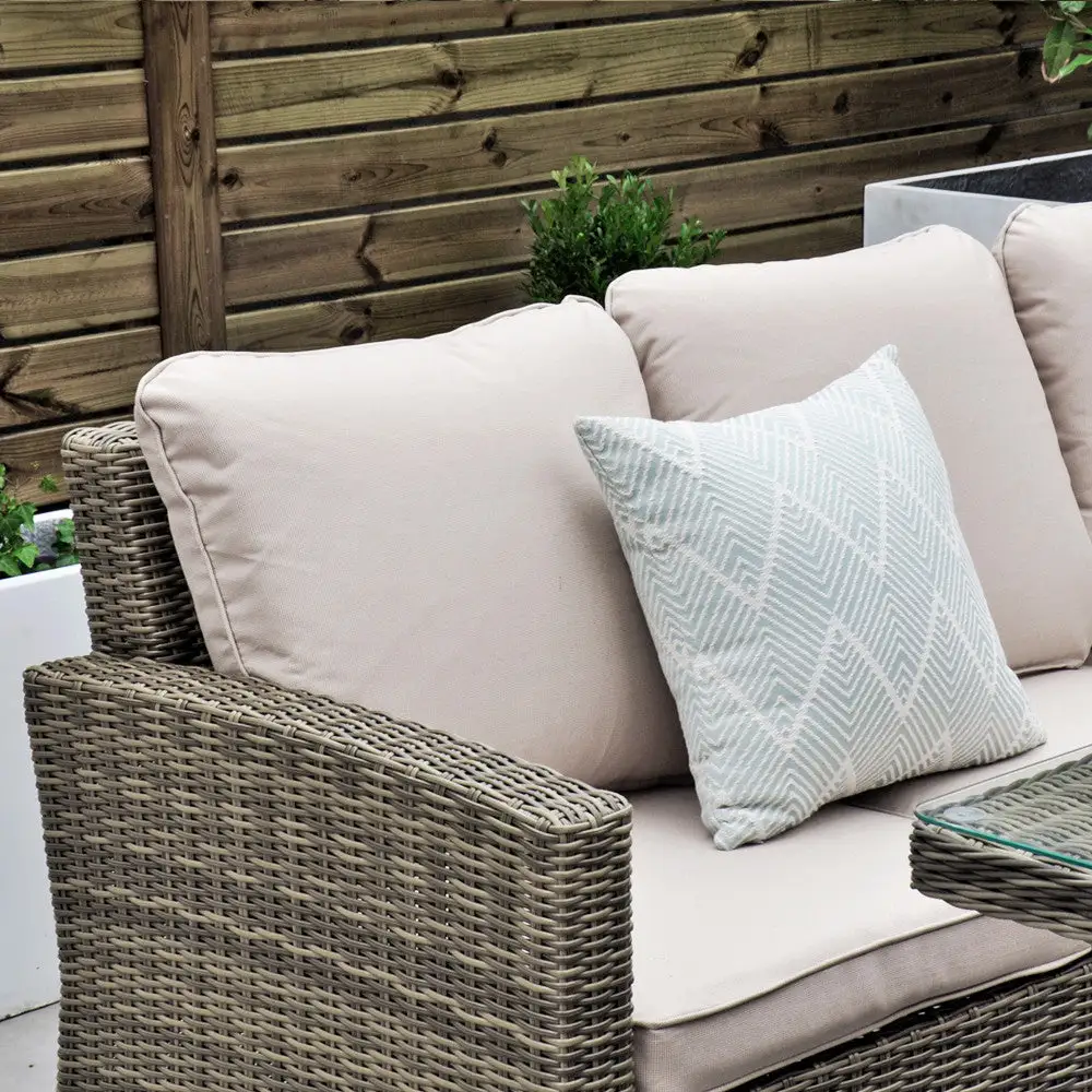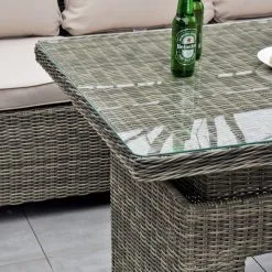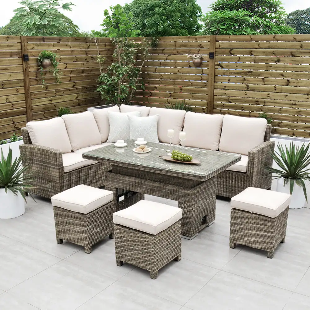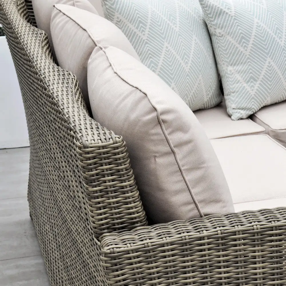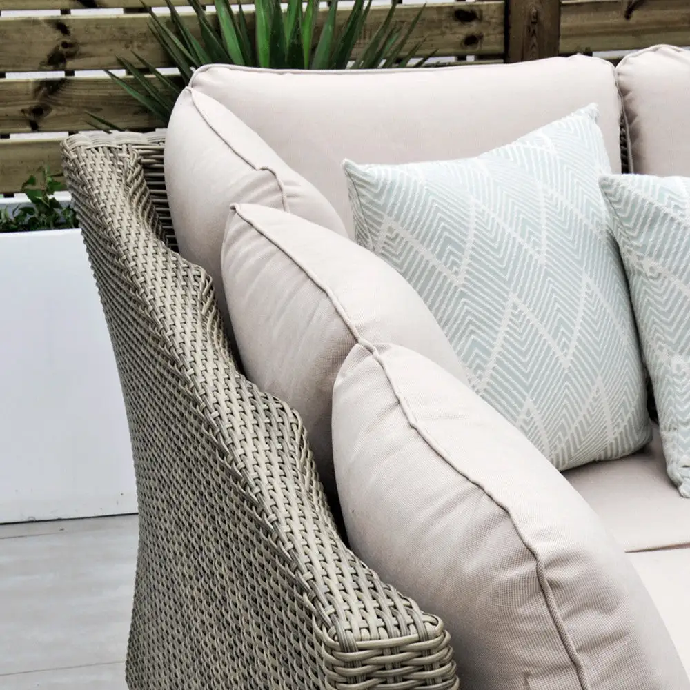 The Chester Corner Set is perfect for relaxing with a cup of coffee or enjoying a meal. There is lots of seating room for you and your family with 3 ottomans as well as the corner sofa itself. This would be stunning on any decking or patio area. Made from the highest grade of rattan and woven around a cast aluminium frame, this set will not rust and is fine to be left outdoors. There is little to no maintenance on this set making it the perfect addition to your home!