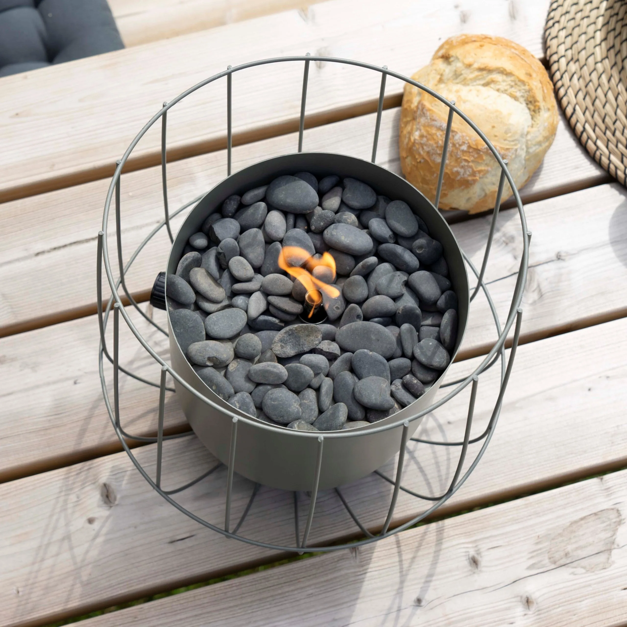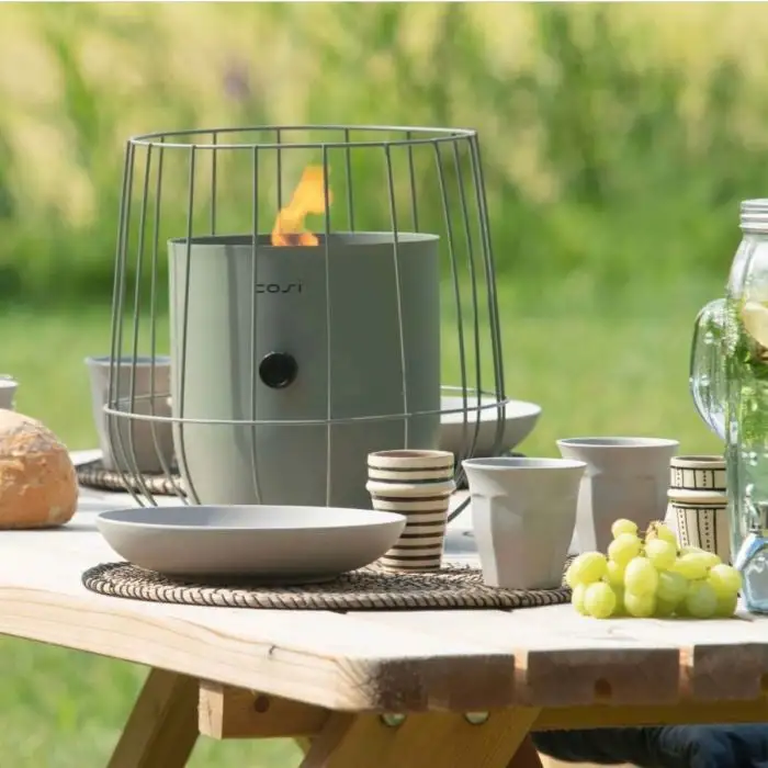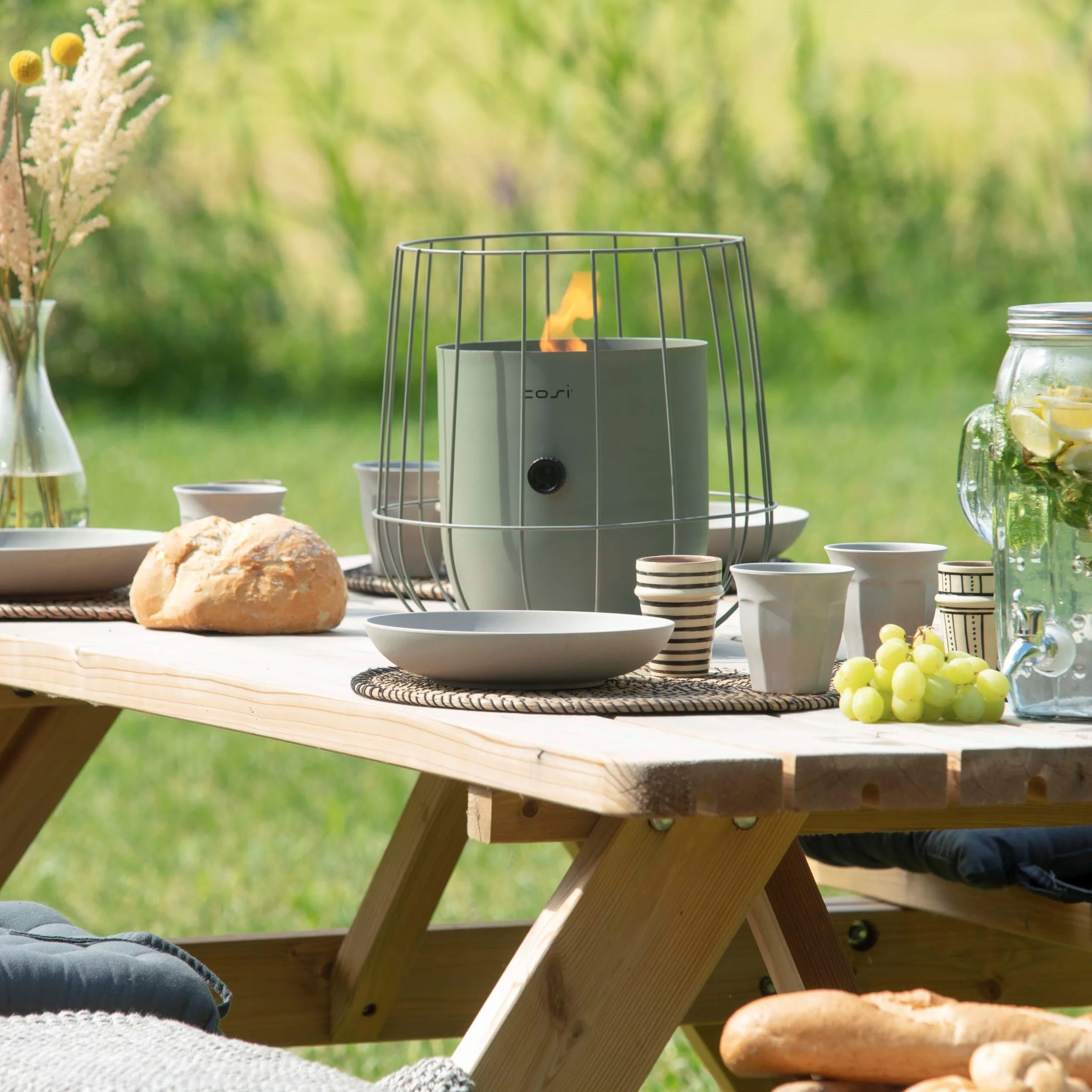 The Cosiscoop Basket Lanter is a scandi take on our garden hurricanes. Propelled by a 190gram gas cartridge, this olive green lantern creates a modern chic outdoor light source. Position in multiples around your outdoor space for maximum effect. Simply twist the can under the lantern, switch on the button and light your scoop with a taper or candle lighter. The Scoops all burn for around six hours.  Â