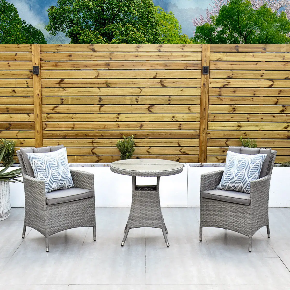 The Cuba Bistro table & chairs is guaranteed to be an instant favourite addition to your outdoor living space and the ideal space to have your morning coffee or simply to relax and unwind with a good book after a hectic day. Made with a cast aluminium frame and a flat weave rattan, this set is durable and weather resistant.