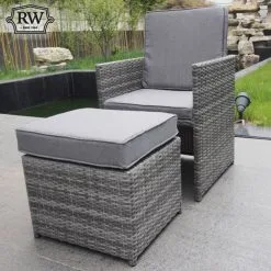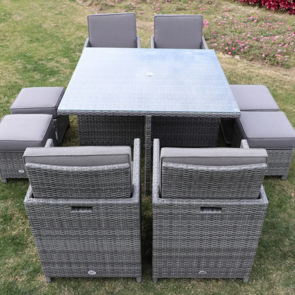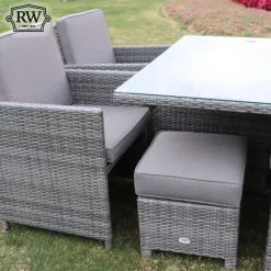The clever design of this Cuba set makes it perfect if you are confined for space in your garden area. Initially a 4 Seat, it turns into a 8 Seat if needed with the 4 footstools, under each seat, being used as ottomans or simply use them as a footstools if you want to sit back and relax during that sunny summer evening. The table top comes complete with a parasol hole and thanks to the clever design on base is needed.
