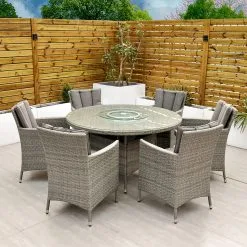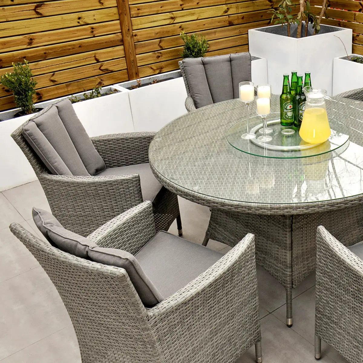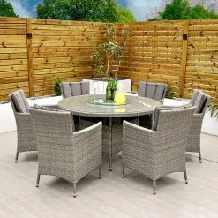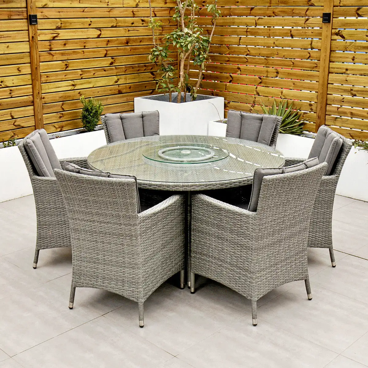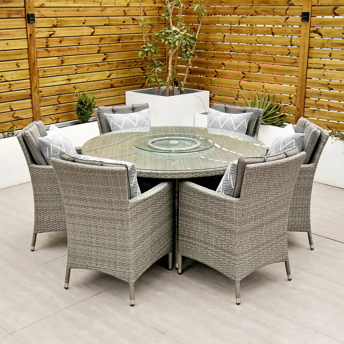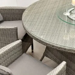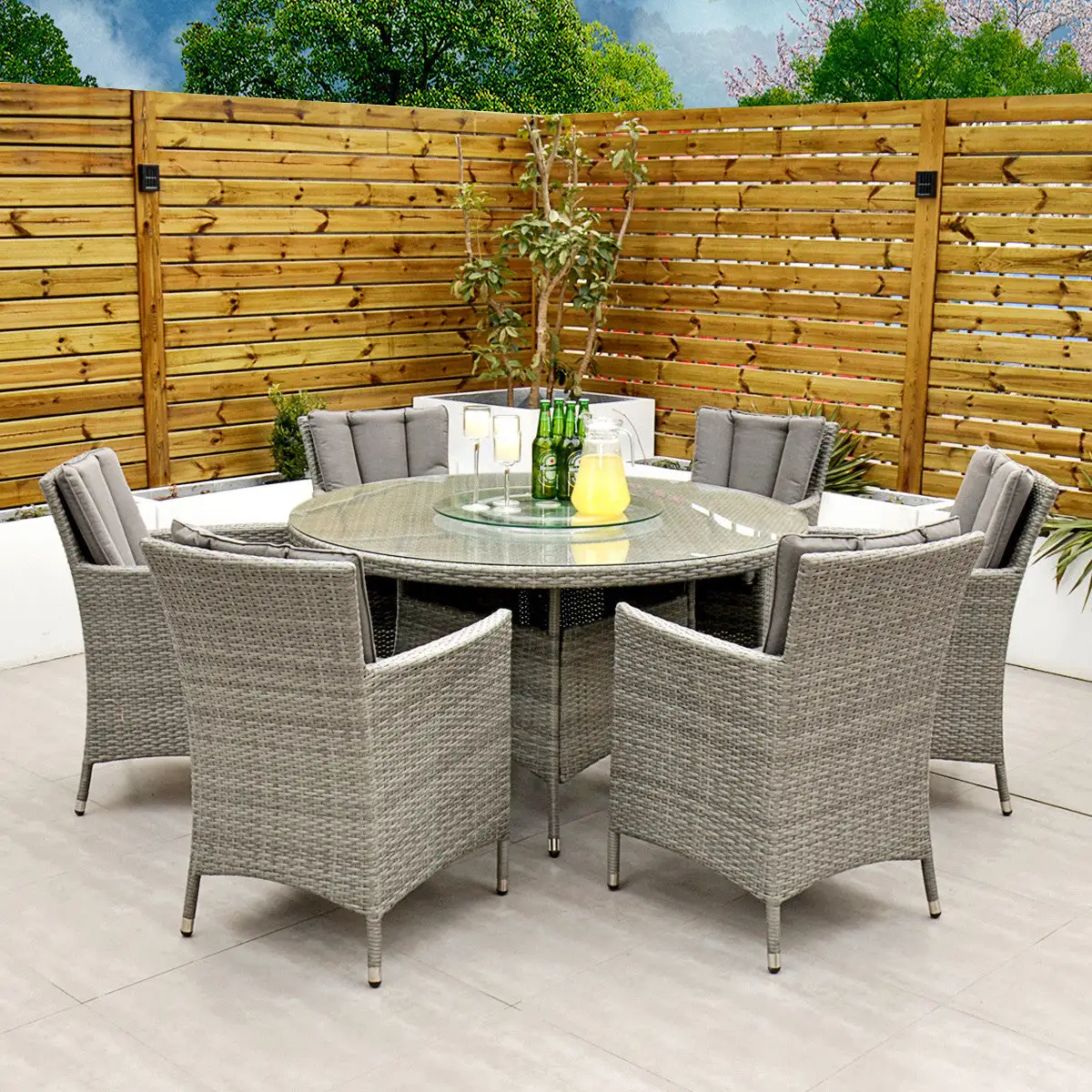 With seating for 6 people this stylish modern Cuba 6 Seat Dining Set makes no compromise on delivering a luxury outdoor dining experience and is ideal for entertaining and bringing the family together. Like all Rathwood Furniture, the Cuba range is designed with the best all-weather rattan, crafted from a high-quality synthetic weave with varied textures and tones woven around 1.4mm thick cast aluminium frames meaning this set will not rust and is fine to be left outdoors. The glass table top is made with 5mm tempered glass for safety. All cushions are easy to clean and made exclusively of the highest quality UV-protected & weatherproof materials. There is little to no maintenance on this set making it the perfect addition to your home! It comes with a 5-Year Structural Guarantee but please note the glass is not covered by the guarantee.