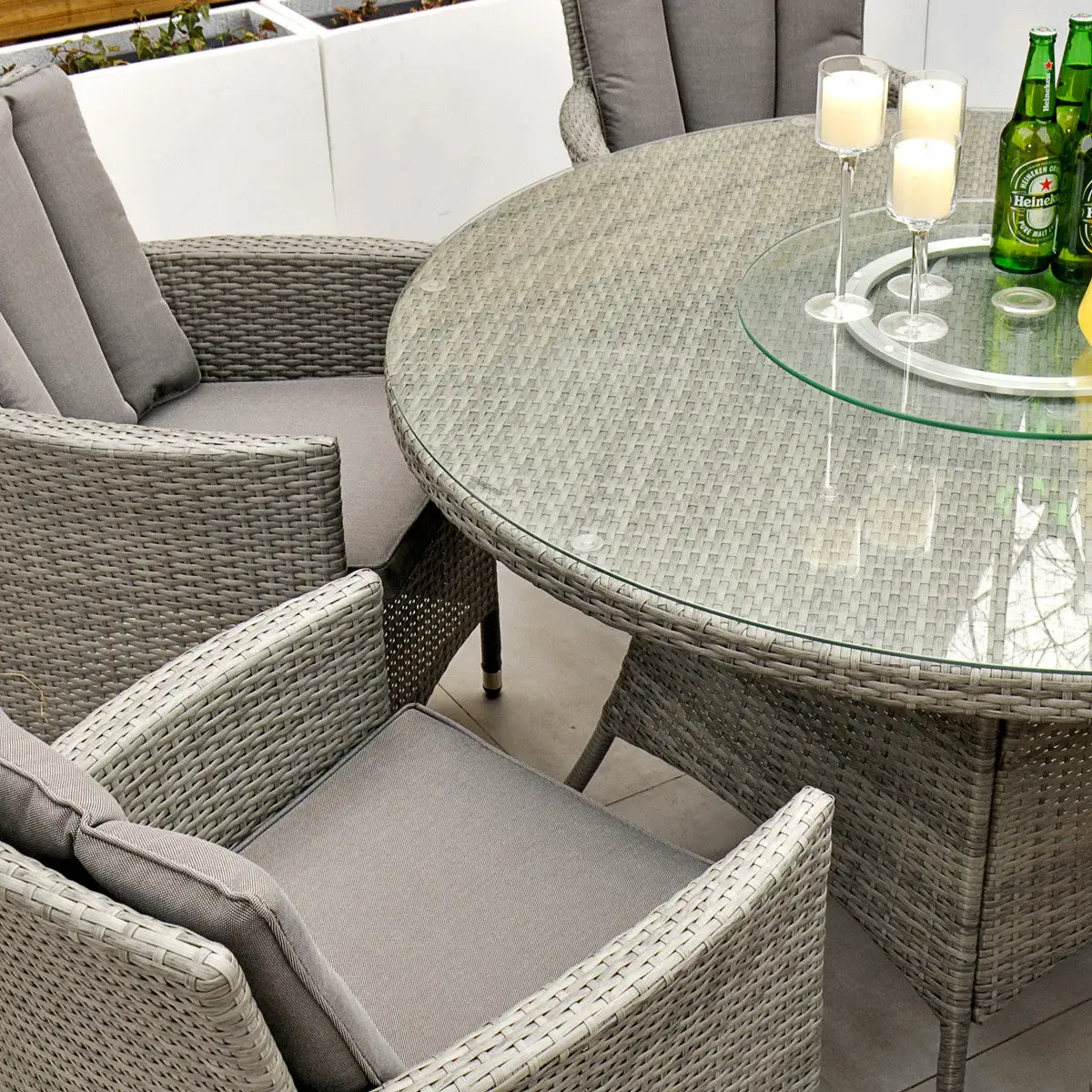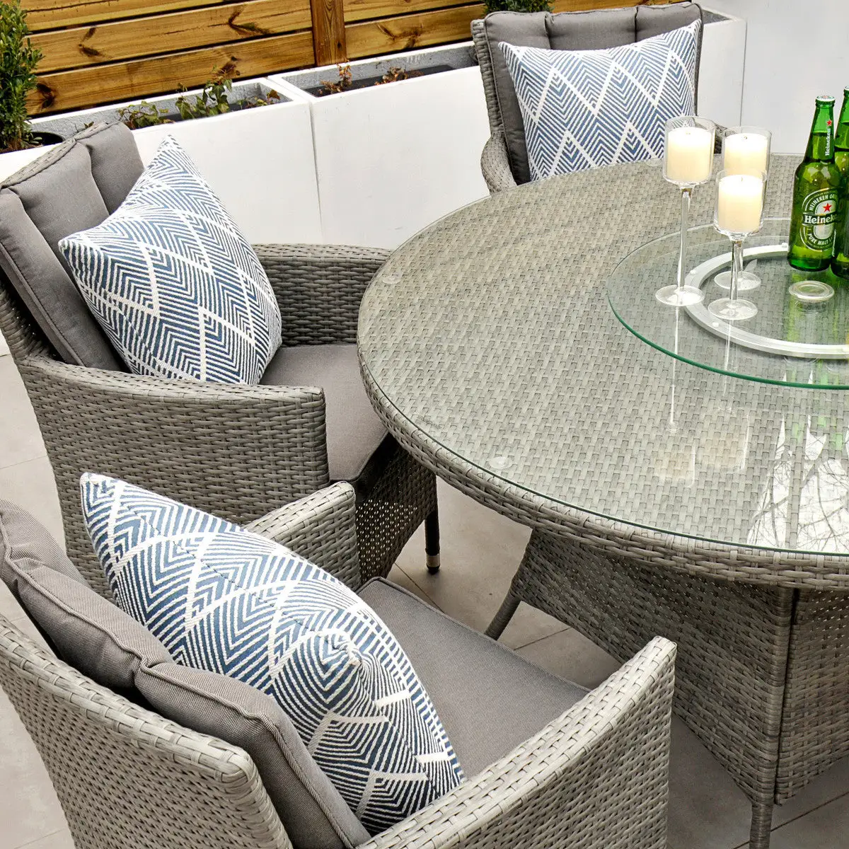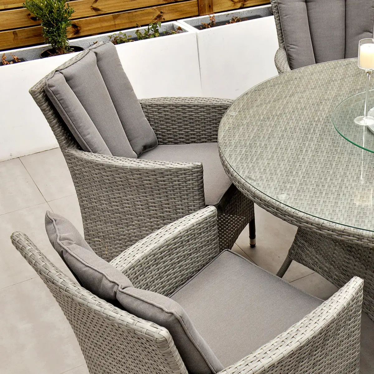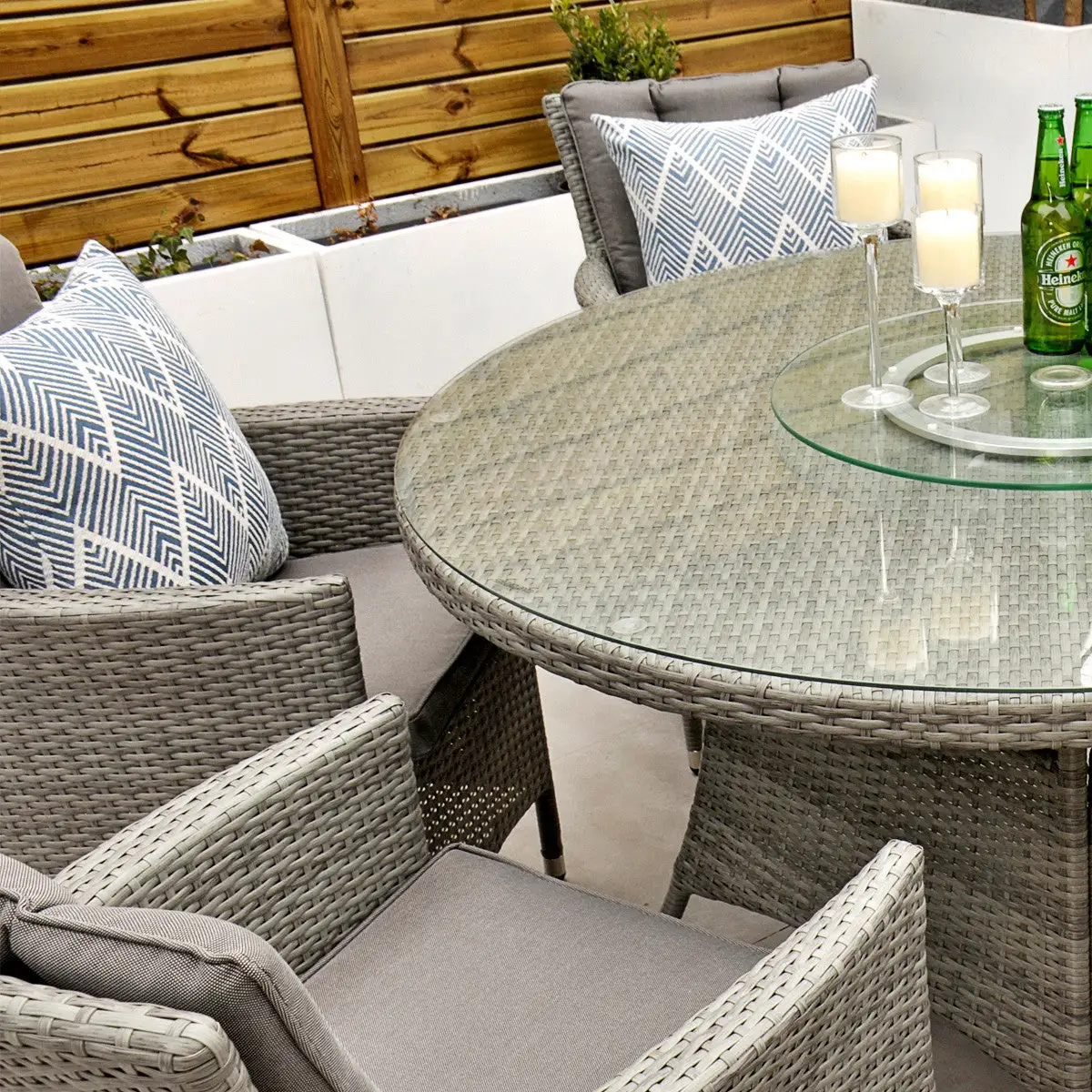 With seating for 6 people this stylish modern Cuba 6 Seat Dining Set makes no compromise on delivering a luxury outdoor dining experience and is ideal for entertaining and bringing the family together. Like all Rathwood Furniture, the Cuba range is designed with the best all-weather rattan, crafted from a high-quality synthetic weave with varied textures and tones woven around 1.4mm thick cast aluminium frames meaning this set will not rust and is fine to be left outdoors. The glass table top is made with 5mm tempered glass for safety. All cushions are easy to clean and made exclusively of the highest quality UV-protected & weatherproof materials. There is little to no maintenance on this set making it the perfect addition to your home! It comes with a 5-Year Structural Guarantee but please note the glass is not covered by the guarantee.