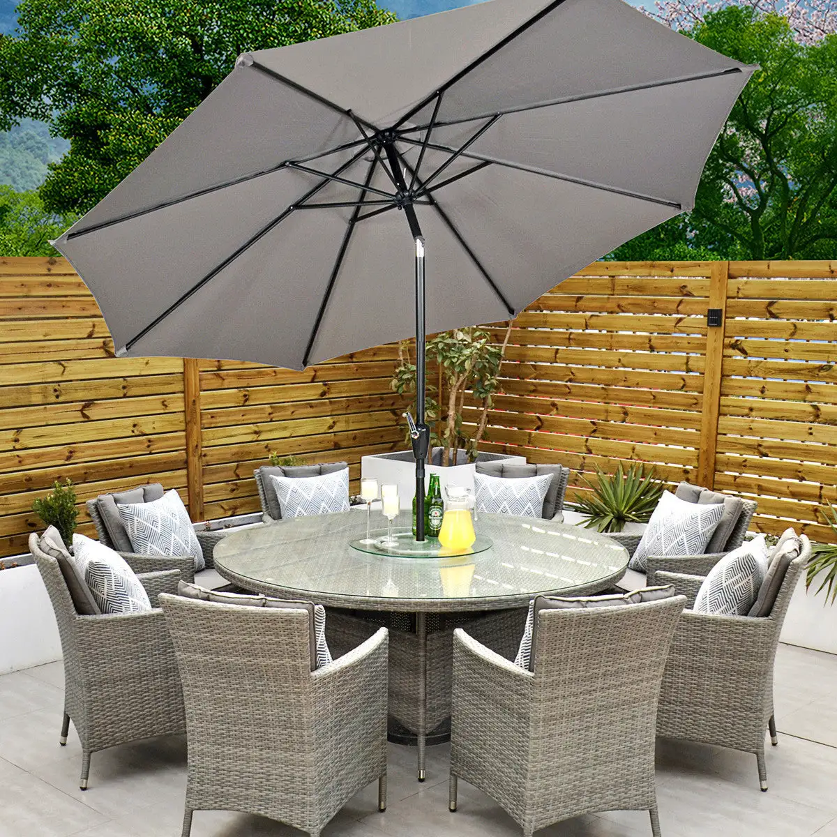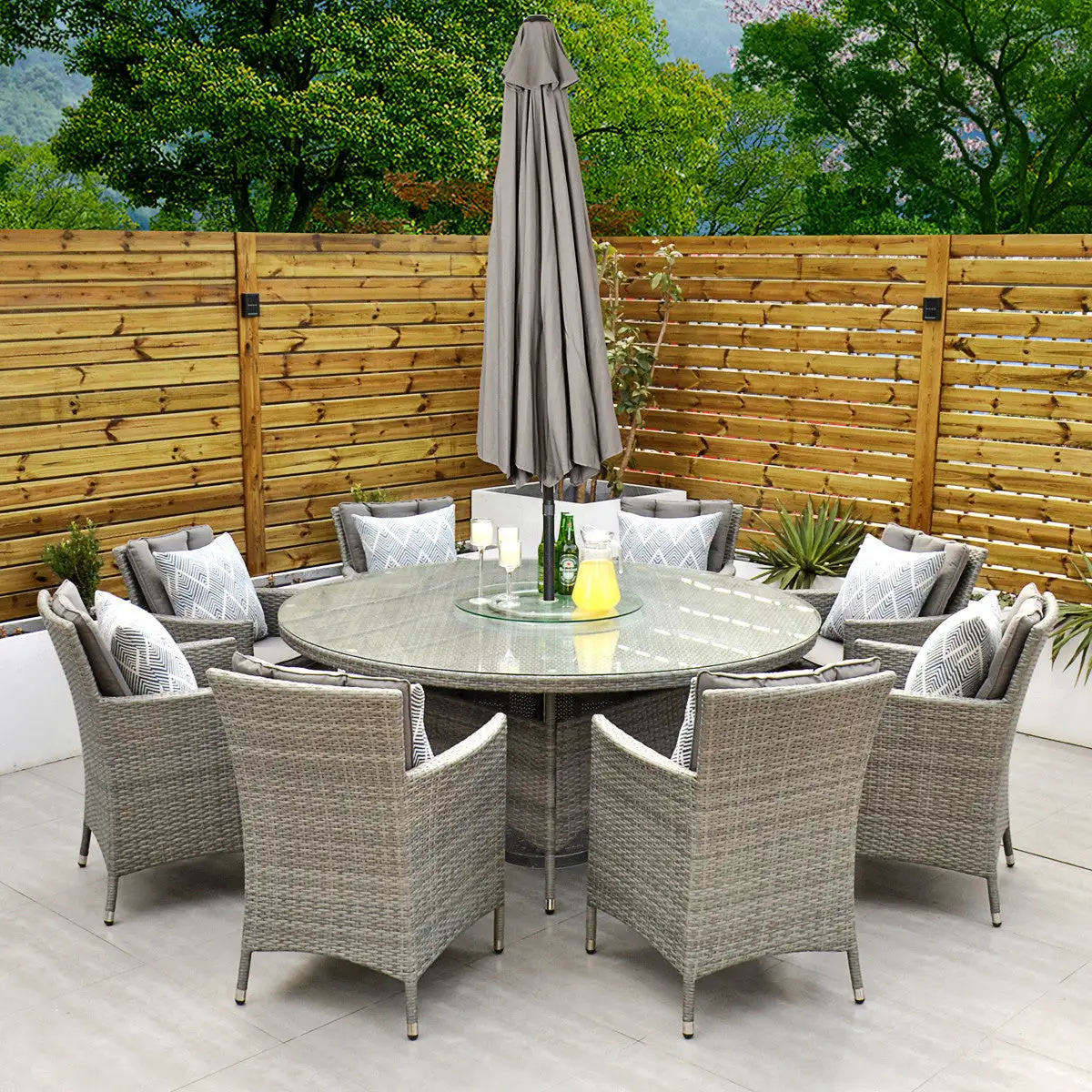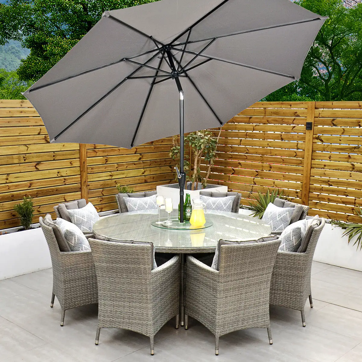 ***Please note the illustrated parasol, lazy susan and throw cushions are sold separately***