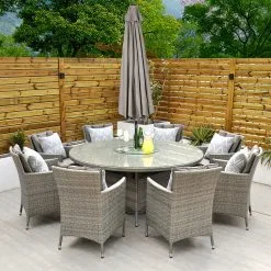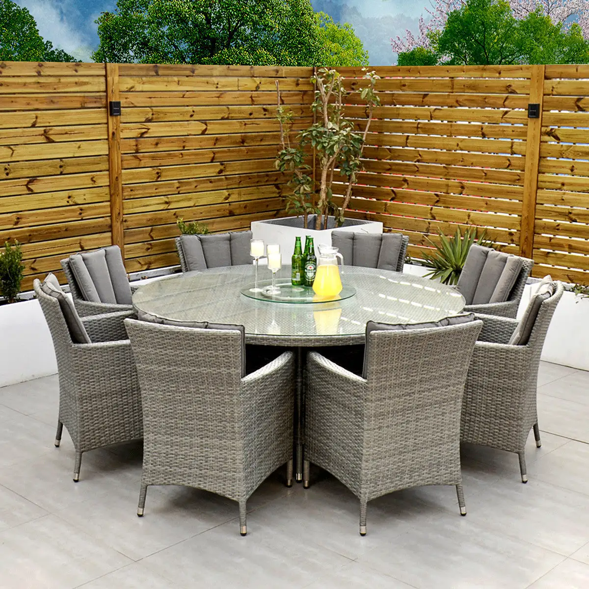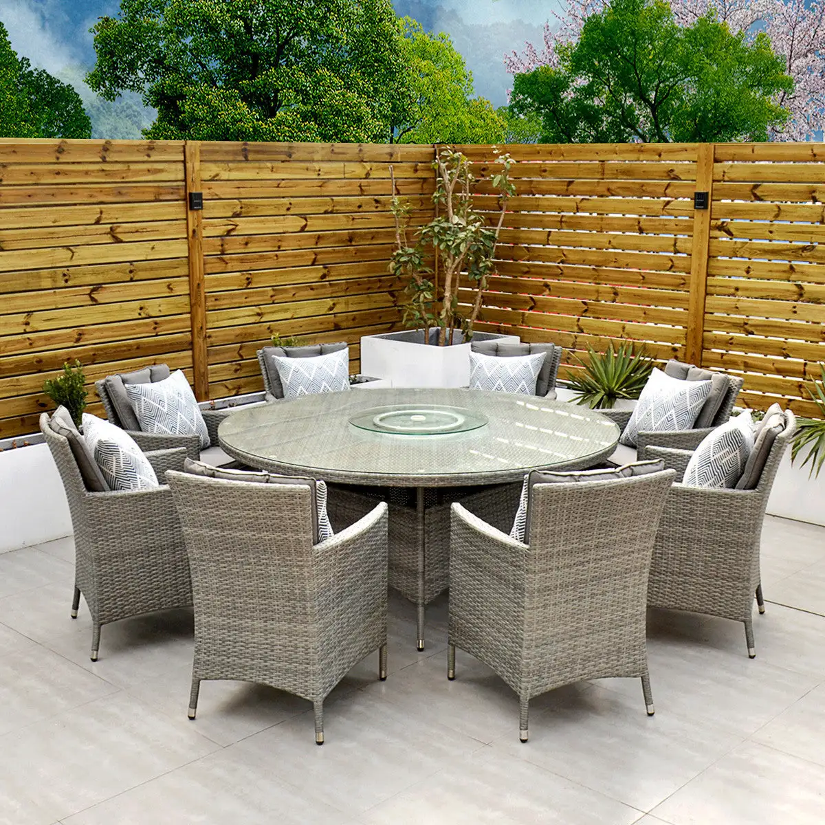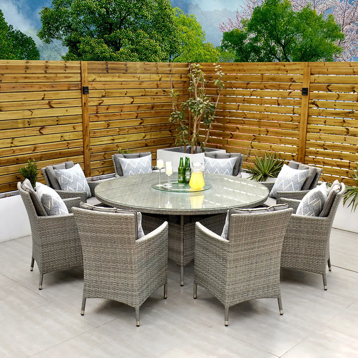 ***Please note the illustrated parasol, lazy susan and throw cushions are sold separately***