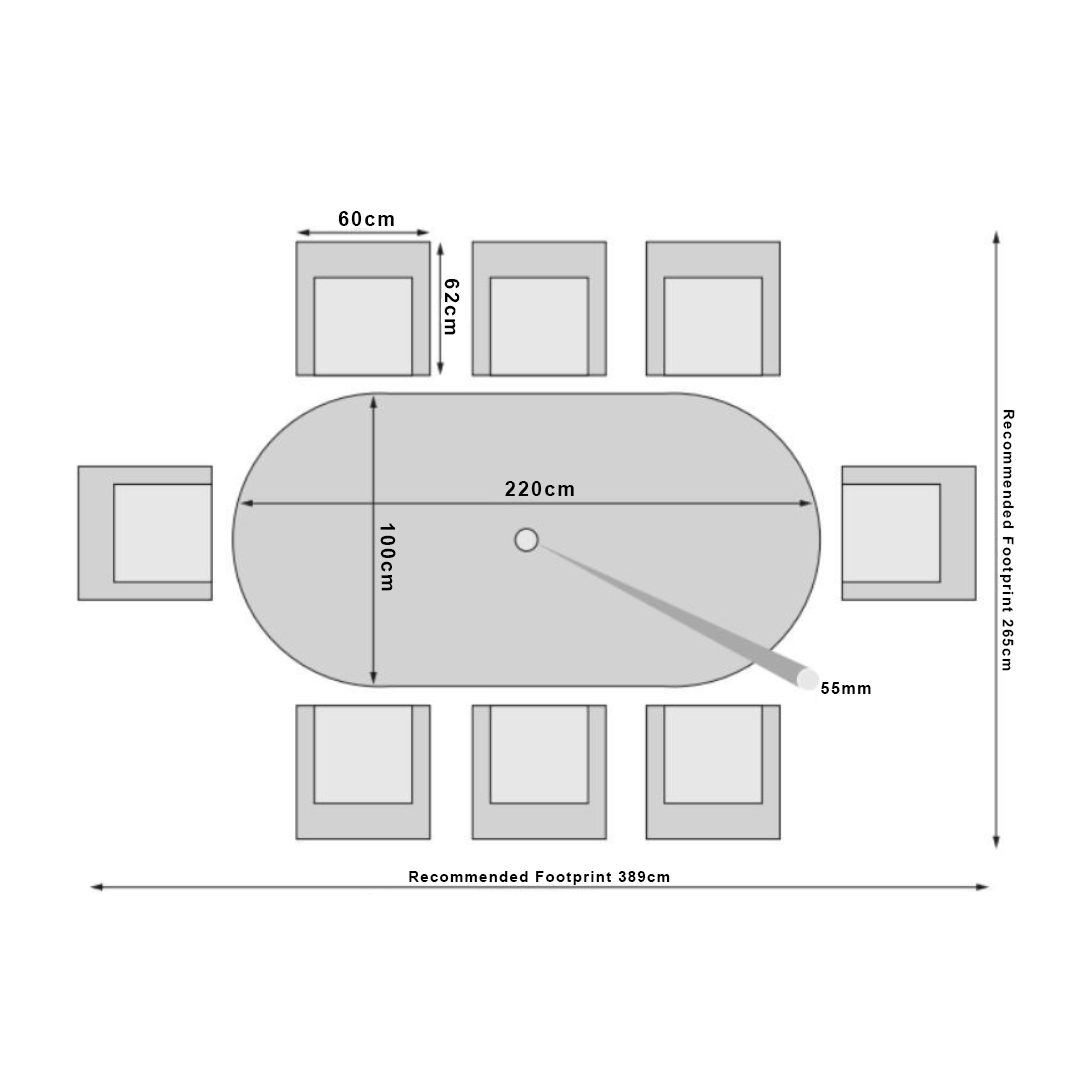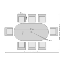 Table Dimensions: Width 220cm x Depth 100cm x Height 75cm.
