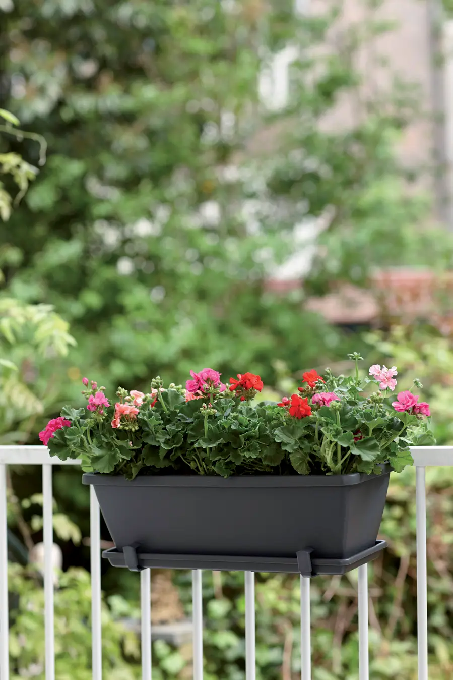 This wonderful, timeless balcony planter by elho is both elegant and robust. The super convenient drainage system is invisibly integrated, so your plants will never get too wet, are protected from root rot and the roots will be properly aerated. Balcony railing, windowsill or wall; this balcony planter with matching brackets will make it extra green anywhere. The Barcelona allows you to fully enjoy life outdoors!