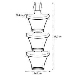 - Set consists of 3 pots that can be attached to each other through a unique hanging system.