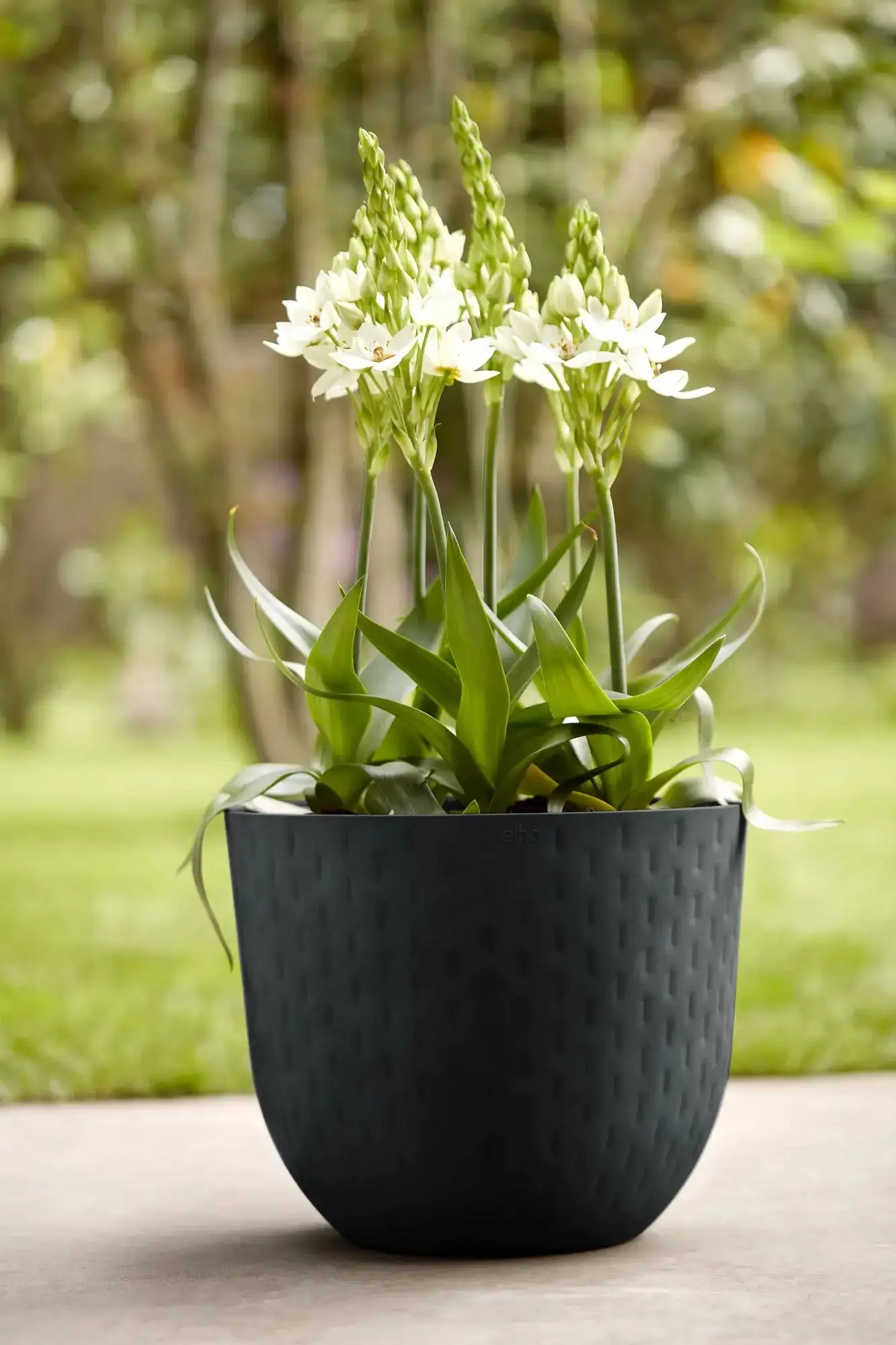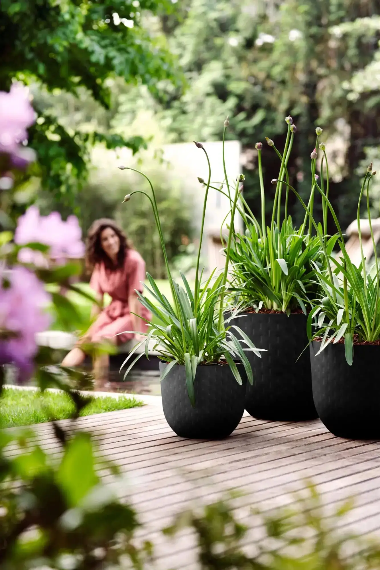 Fuente grains is a gorgeous designer pot that fits perfectly on every patio and balcony and in every garden. Combine this pot with one of the other sizes or go for a more adventurous combination with another pattern from this collection. These pots are also suitable for indoor use; make sure that the plug is inserted into the bottom of the pot. For outdoor use, remove the plug so the water can run off.