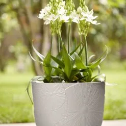Give your patio, balcony or garden a botanical touch with fuente lily. Combine this pot with one of the other sizes or go for a more adventurous combination with another pattern from this collection. These pots are also suitable for indoor use; make sure that the plug is inserted into the bottom of the pot. For outdoor use, remove the plug so the water can run off.