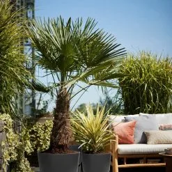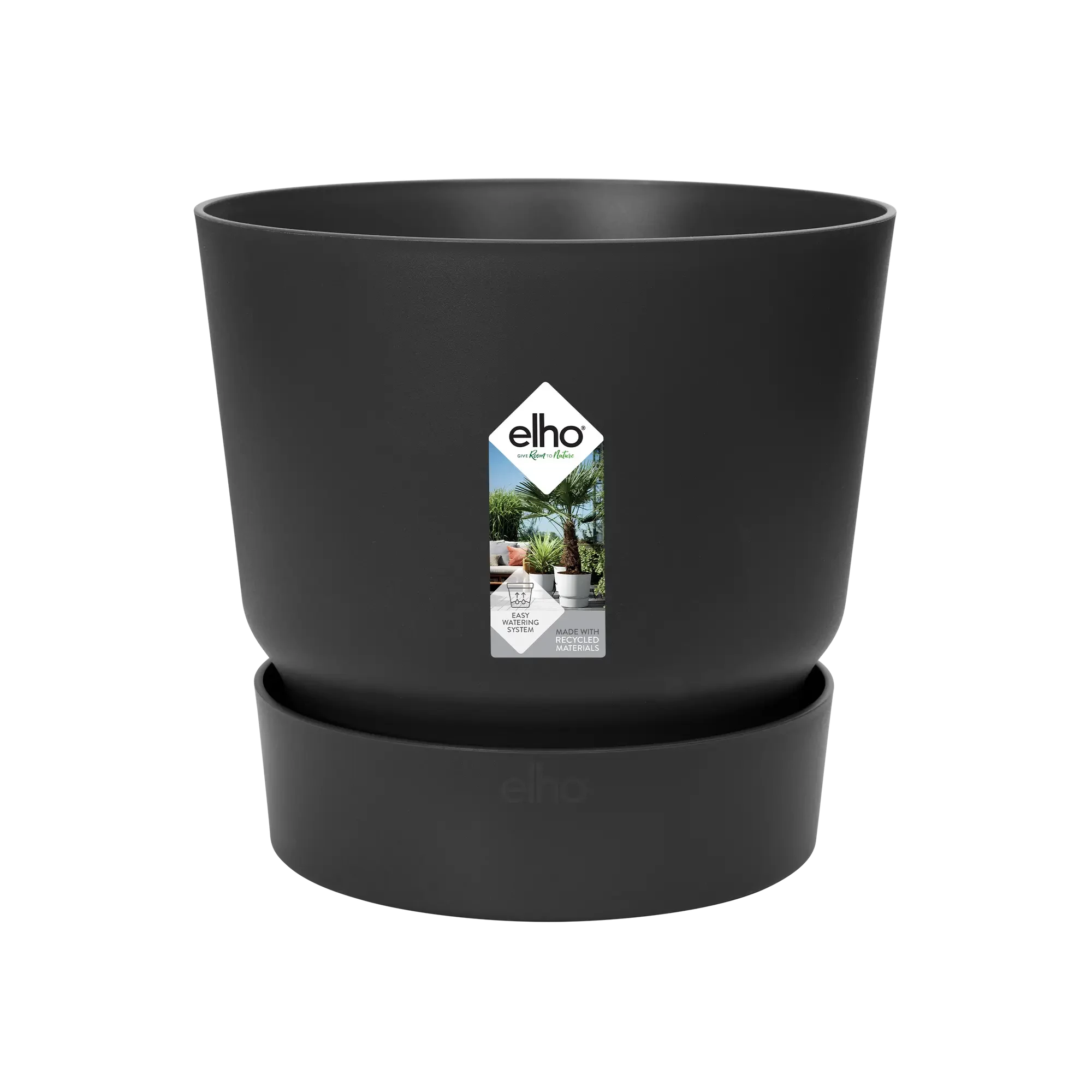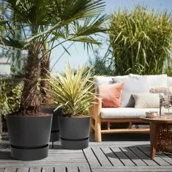 This beautiful designer pot made from recycled plastic is frostproof and therefore suitable for all seasons in the garden or on the terrace. The pot has an integrated water reservoir so your plants will always have enough water. These flower pots are made from high-quality plastic, are easy to clean, and are sturdy.