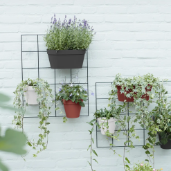 A duo wall planter for your own, personalised vertical garden. The elho loft urban green wall is a playful, customisable vertical garden that lets you create your very own urban jungle, even in the smallest of spaces. Hook plant pots in different sizes and colours to the black wire wall grid and fill the pots with your favourite plants and flowers. These wall planters are perfect for growing herbs or tropical hanging plants. Or something completely different. It’s all up to you!