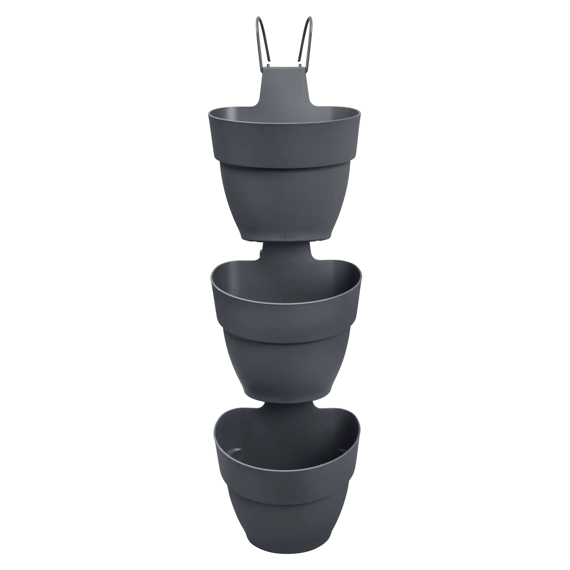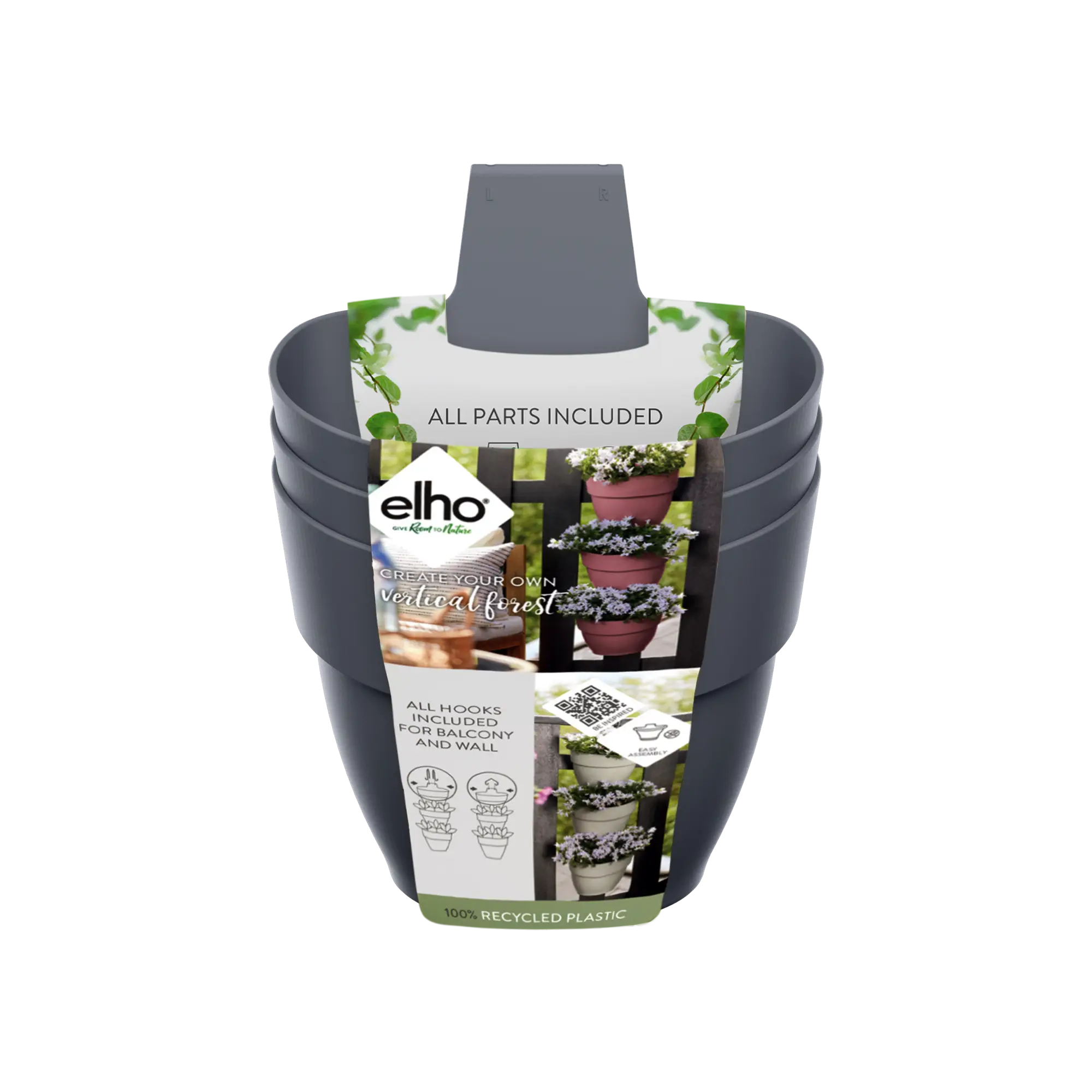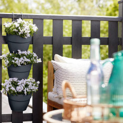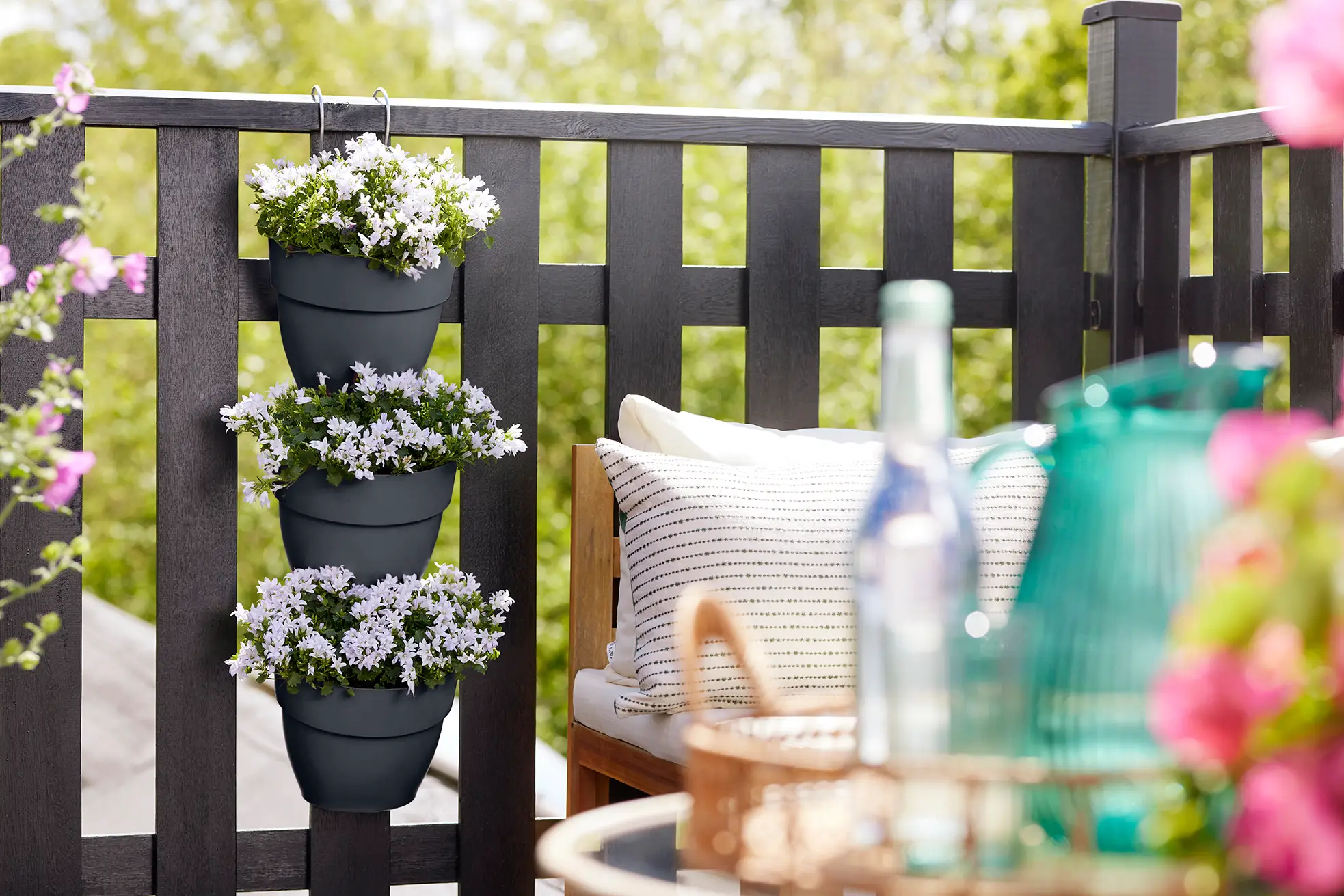 If your terrace or balcony is not big enough or green enough, just get creative and go vertical! Thanks to the three pots, the vibia campana vertical garden can accommodate all of your favourite plants. Experiment with the two hooks provided and hang it on the wall or on the balcony railing! This way, you can easily brighten up your balcony and turn a bare wall into a green oasis. The overflow tube ensures that you can enjoy the greenery longer, as excess water can drain away. You can trust that our love for nature is reflected in how this pot was produced: it’s made from recycled plastic, produced with wind energy from our own windmill, and it’s also fully recyclable.