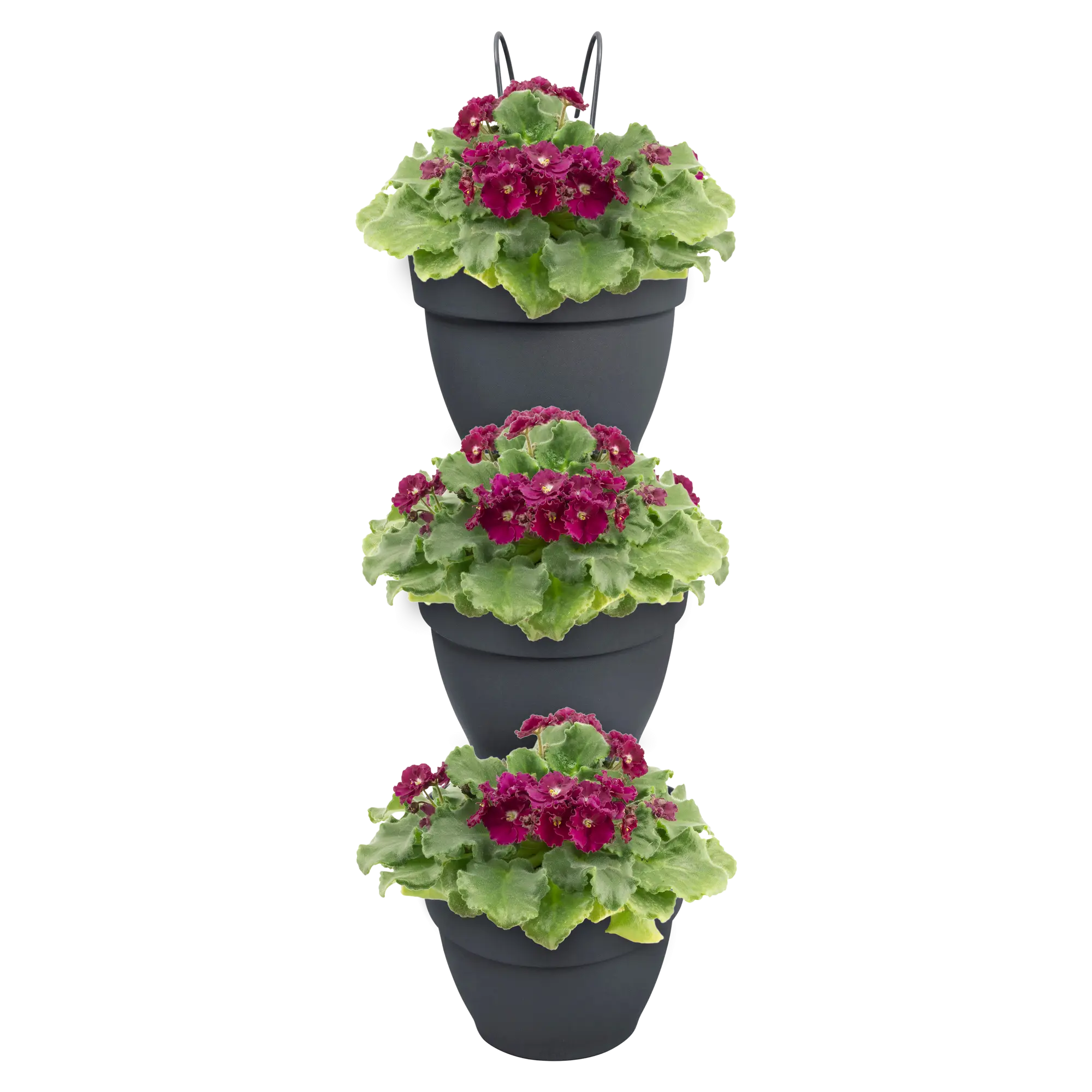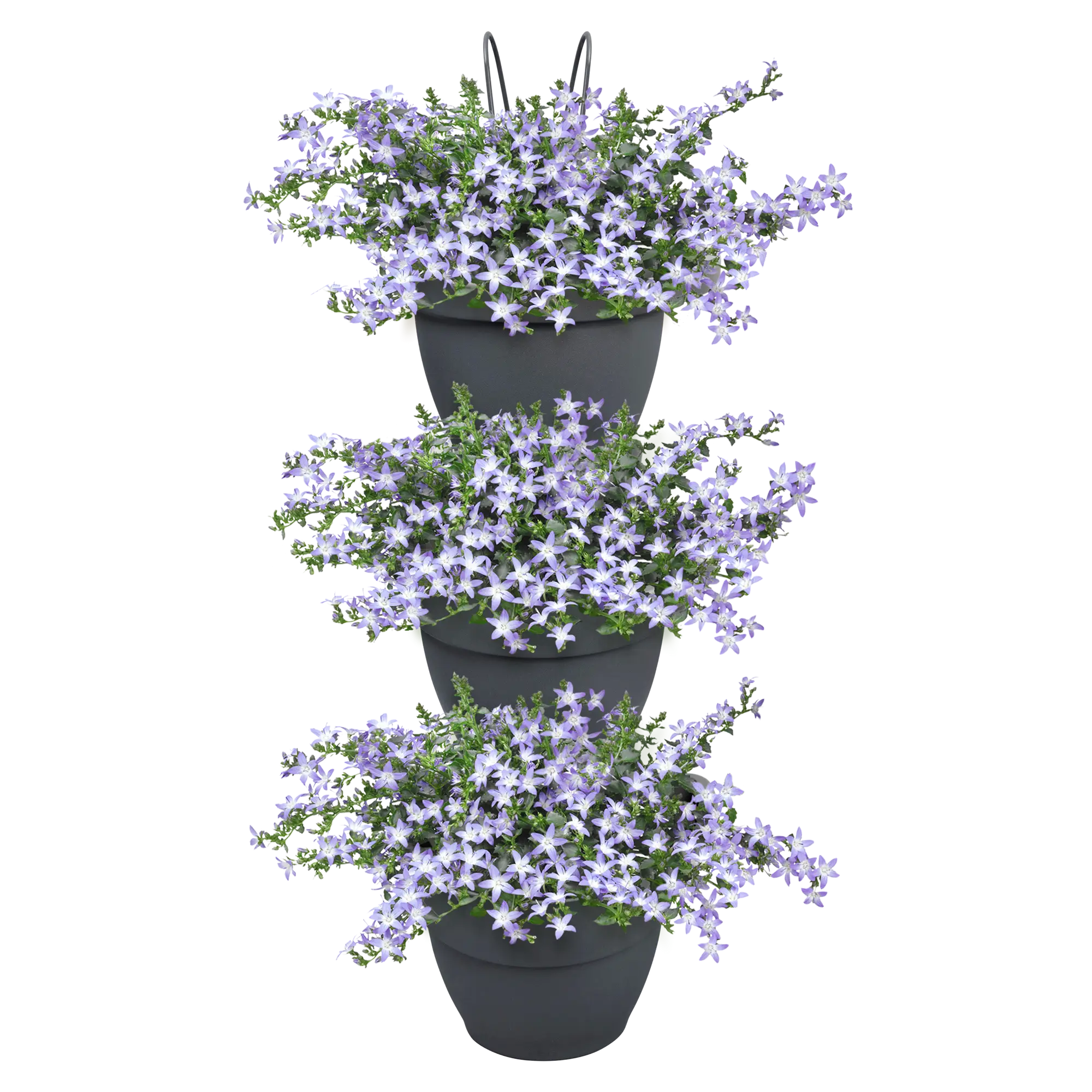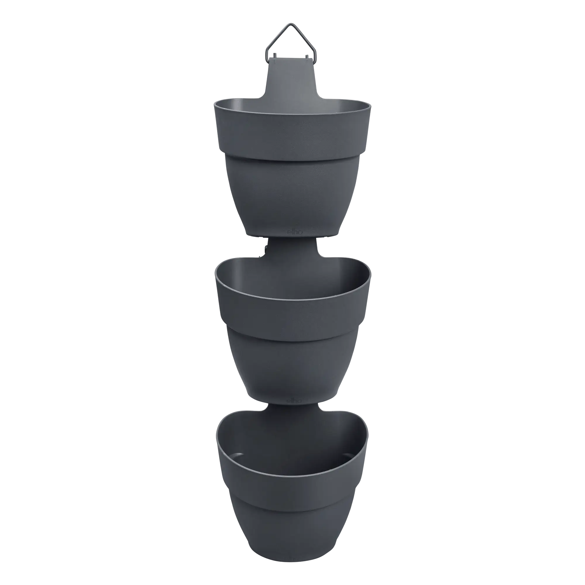 If your terrace or balcony is not big enough or green enough, just get creative and go vertical! Thanks to the three pots, the vibia campana vertical garden can accommodate all of your favourite plants. Experiment with the two hooks provided and hang it on the wall or on the balcony railing! This way, you can easily brighten up your balcony and turn a bare wall into a green oasis. The overflow tube ensures that you can enjoy the greenery longer, as excess water can drain away. You can trust that our love for nature is reflected in how this pot was produced: it’s made from recycled plastic, produced with wind energy from our own windmill, and it’s also fully recyclable.