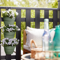 If your terrace or balcony is not big enough or green enough, just get creative and go vertical! Thanks to the three pots, the vibia campana vertical garden can accommodate all of your favourite plants. Experiment with the two hooks provided and hang it on the wall or on the balcony railing! This way, you can easily brighten up your balcony and turn a bare wall into a green oasis. The overflow tube ensures that you can enjoy the greenery longer, as excess water can drain away. You can trust that our love for nature is reflected in how this pot was produced: it’s made from recycled plastic, produced with wind energy from our own windmill, and it’s also fully recyclable.