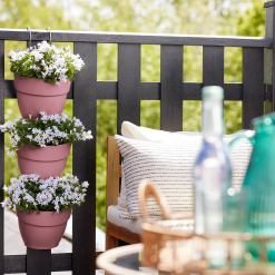 If your terrace or balcony is not big enough or green enough, just get creative and go vertical! Thanks to the three pots, the vibia campana vertical garden can accommodate all of your favourite plants. Experiment with the two hooks provided and hang it on the wall or on the balcony railing! This way, you can easily brighten up your balcony and turn a bare wall into a green oasis. The overflow tube ensures that you can enjoy the greenery longer, as excess water can drain away. You can trust that our love for nature is reflected in how this pot was produced: it’s made from recycled plastic, produced with wind energy from our own windmill, and it’s also fully recyclable.