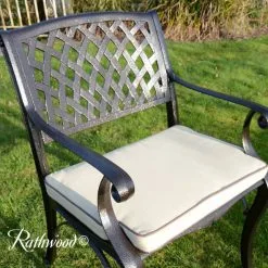 The Cast Aluminium Fitzhenry 8 Seat oval table set is durable, practical and stylish; it is the perfect addition to your outdoor area. Being made from bronze-finished aluminium it requires little or no maintenance and it is completely rust-free as well as being highly attractive! The chairs stack making it convenient for storage and the cream cushion covers, which come with the set, are machine washable