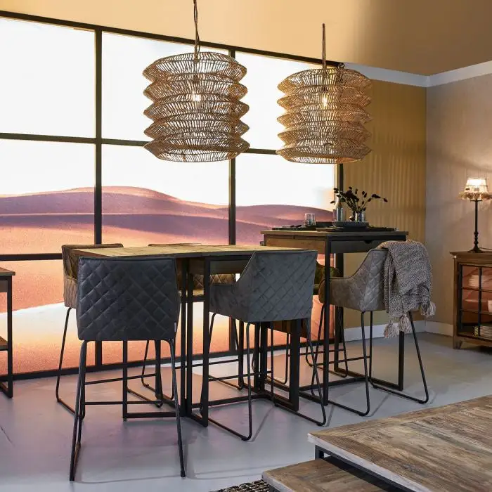 The Frisco Drive Counter Stool immediately gives your interior character thanks to its industrial look given to the chair by its iron frame, despite the iron legs having a subtle design. The bucket seat is top-stitched in a diamond pattern, giving the impression that the entire stool is bedecked with tiny cushions. The chair is available in a number of different materials and colours.