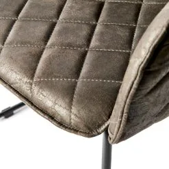 This dining chair can be called both classical and industrial. The iron frame gives the industrial look, despite the iron legs having a subtle design. The bucket seat is covered with pellini leather, which is top-stitched in a diamond pattern, giving the impression that the entire chair is bedecked with tiny cushions.