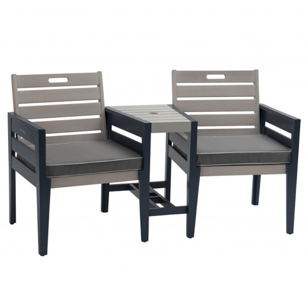 With space for a parasol on the centre table, the Galaxy Tete a Tete Bench seat will be the ideal location for you and your loved ones. You’ll have a shady spot for your snacks and perhaps a cold beverage. Its lovely blue and grey wash tones will also provide your landscape with a splash of colour while also offering a cosy place to sit and enjoy the sunshine.