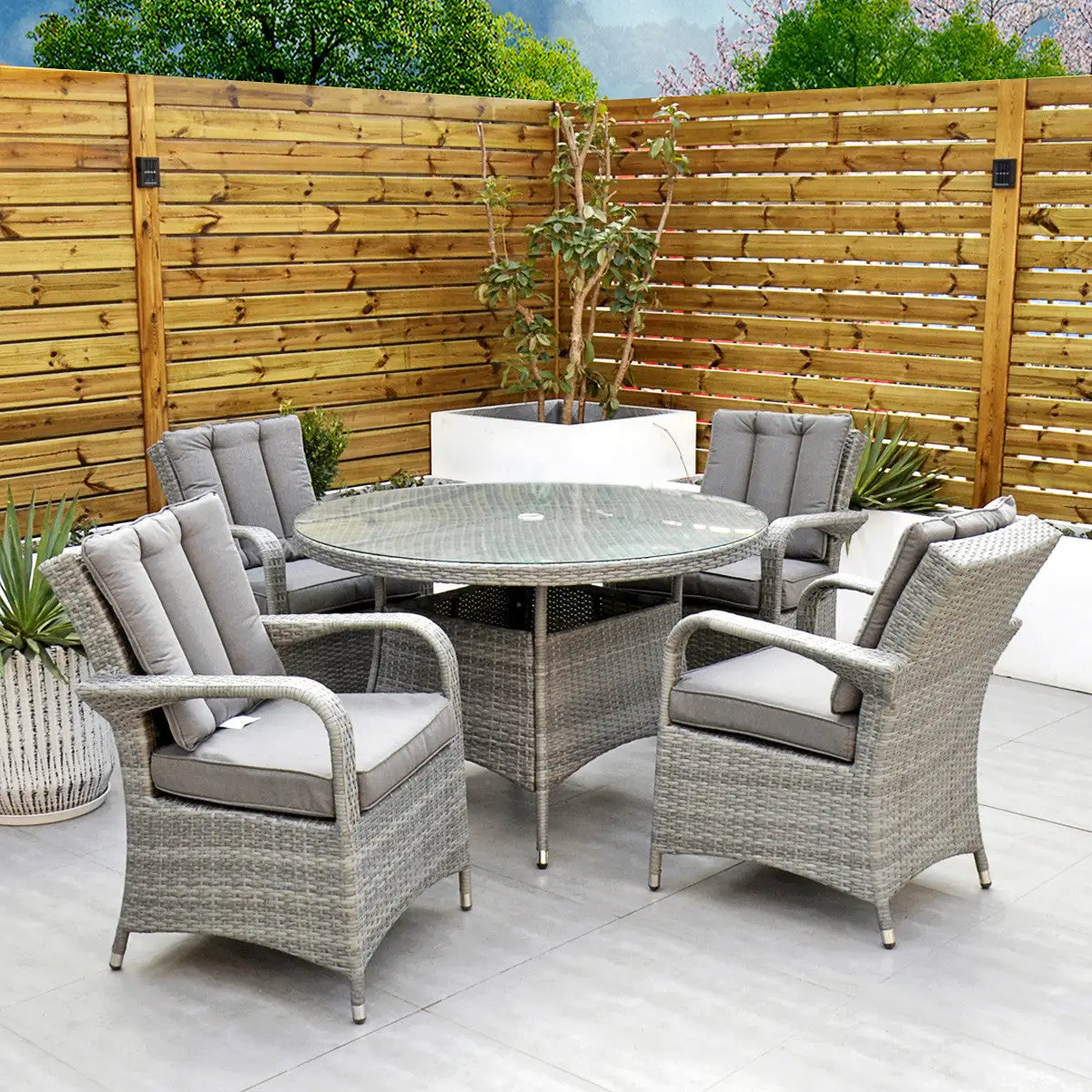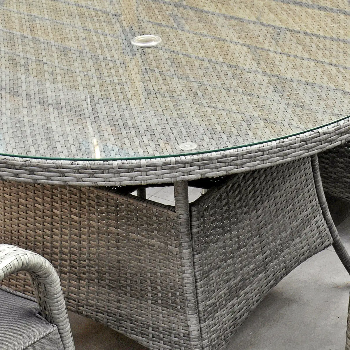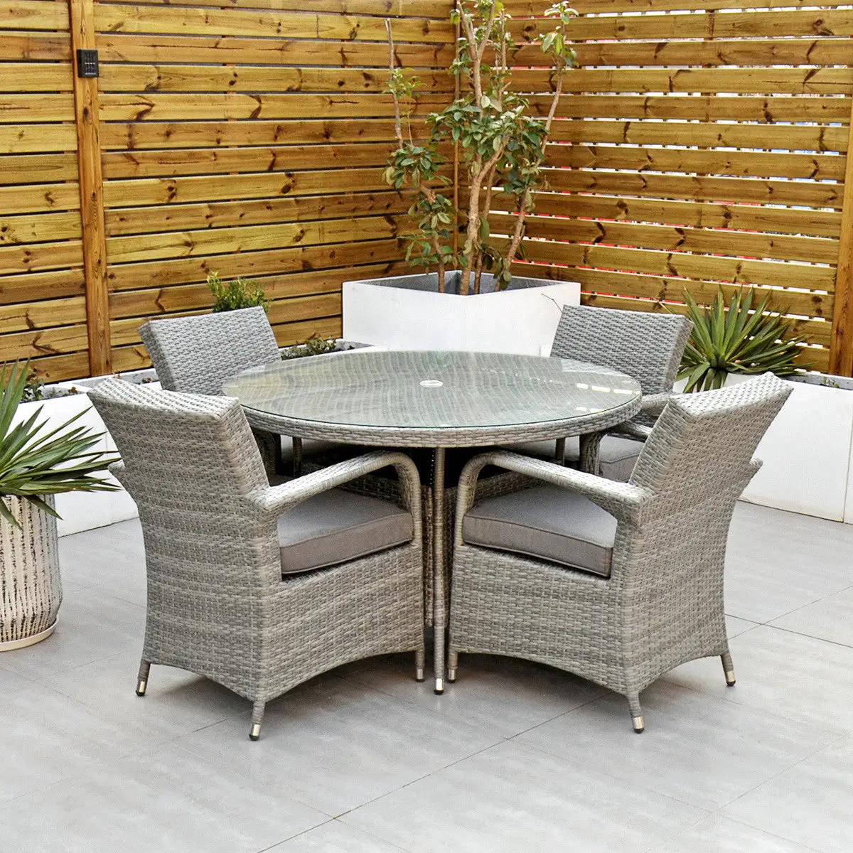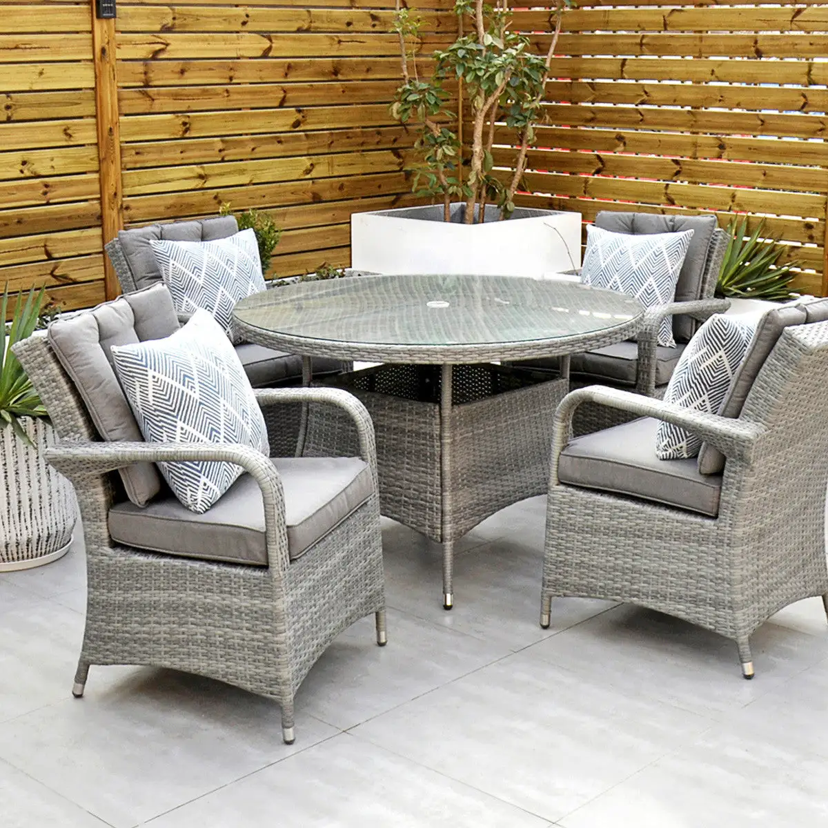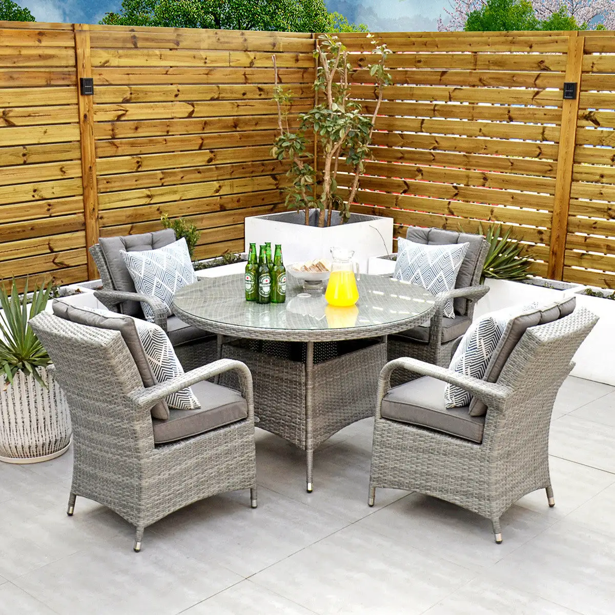 Like all Rathwood Furniture, it’s designed with the best all-weather rattan, crafted from a high-quality synthetic weave with varied textures and tones woven around 1.4mm thick cast aluminium frames meaning this set will not rust and is fine to be left outdoors. The glass table top is made with 5mm tempered glass for safety. All cushions are easy to clean and made exclusively of the highest quality UV-protected & weatherproof materials. There is little to no maintenance on this set making it the perfect addition to your home!