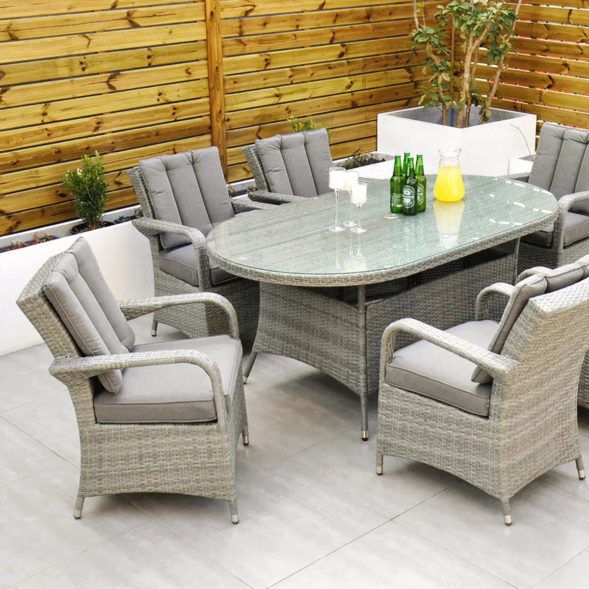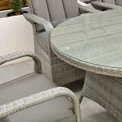 Made from the highest grade of rattan and a cast aluminium frame the Havana 6 seater oval set will ensure you, your family and friends enjoy many years of dining and entertaining. Its quirky armchair design gives this set a sense of character. Comfortable, stylish and durable this set is the perfect addition to your outdoor space. The tempered glass top, curvaceous half weave rattan and comfortable seats complete the stylish look, for a maintenance free garden set to seat up to 6 people.