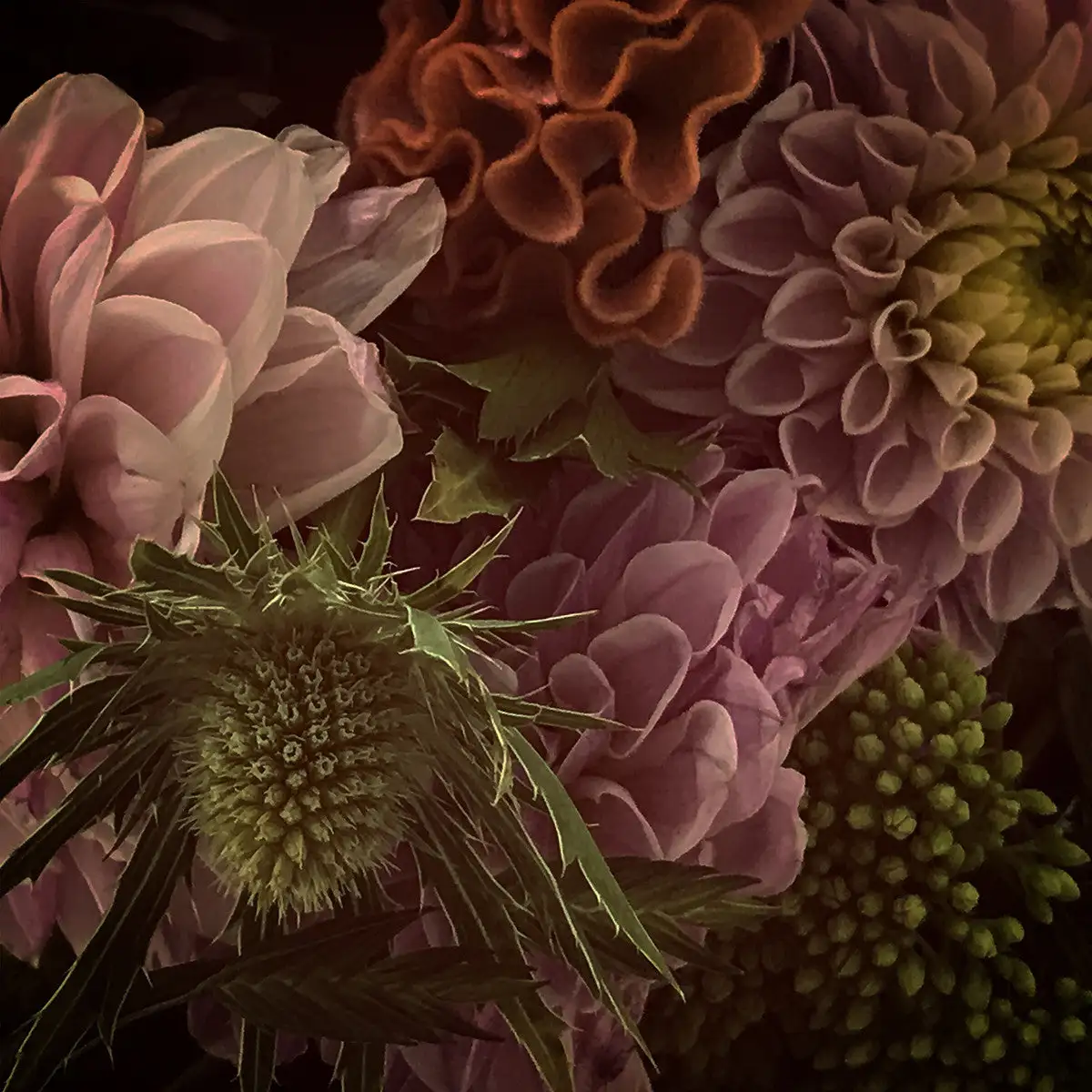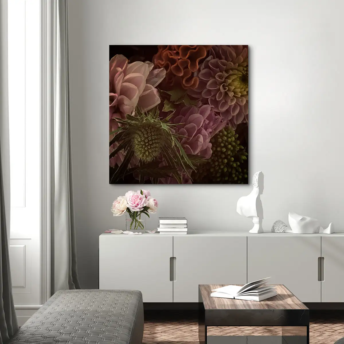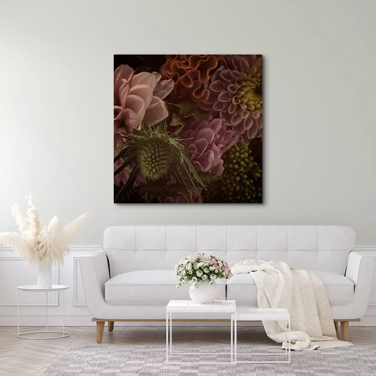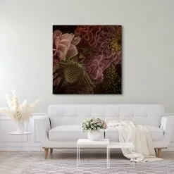 This bouquet canvas print features hints of pink, yellow, orange and green.