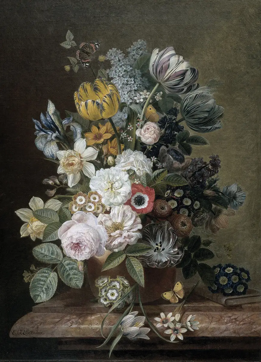This art block features a vase of flowers that are placed on a table. This is an excellent piece to add to any part of the home.