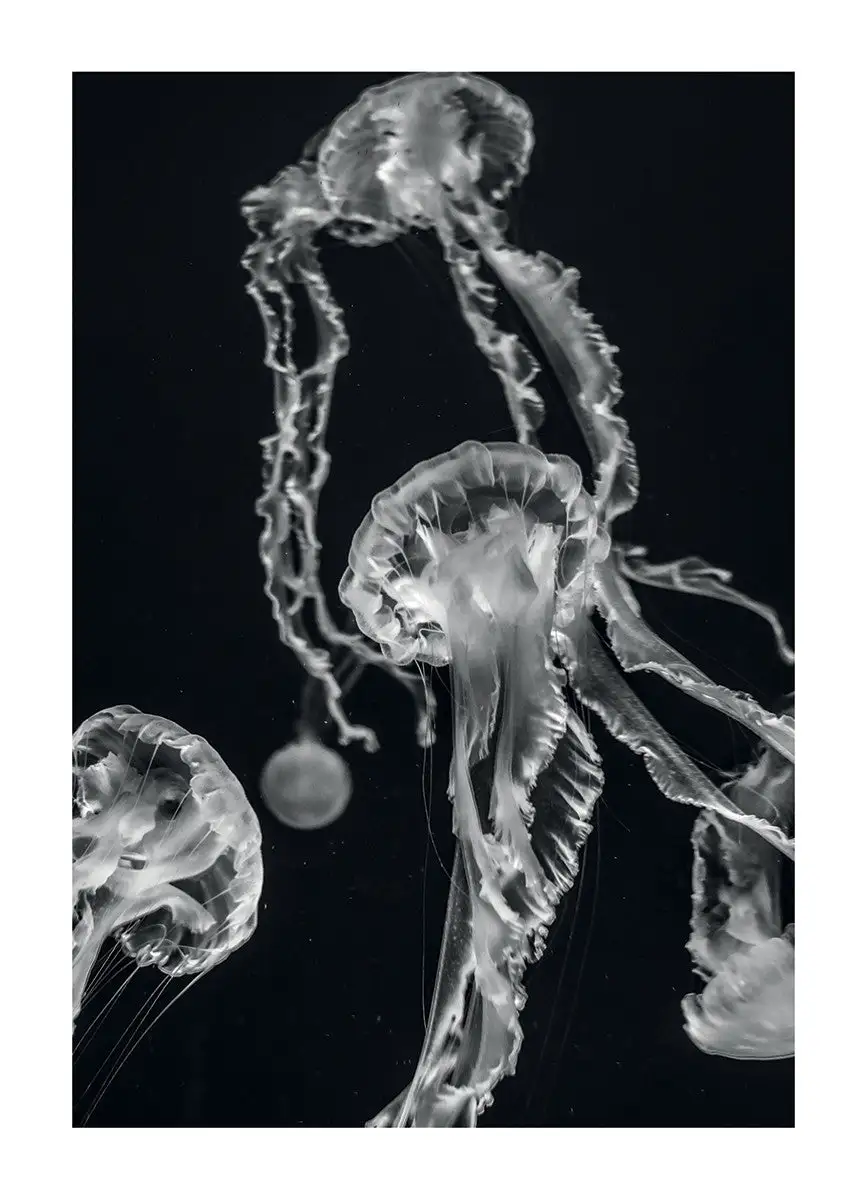 This art block shows jellyfish on a dark background.