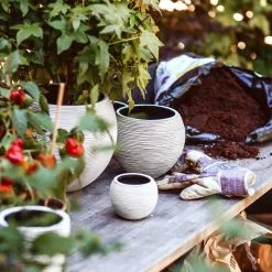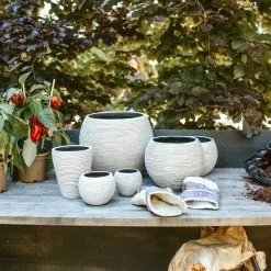 A lightweight planter with a Rib pattern on the body which is taken from nature. This pot is designed for indoor use only so comes with a solid bottom but it is not guaranteed to be 100% watertight so the use of a planter inner is advised. Each pot is handmade which makes it unique and comes with a Lifetime Warranty against production errors.