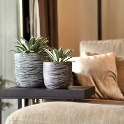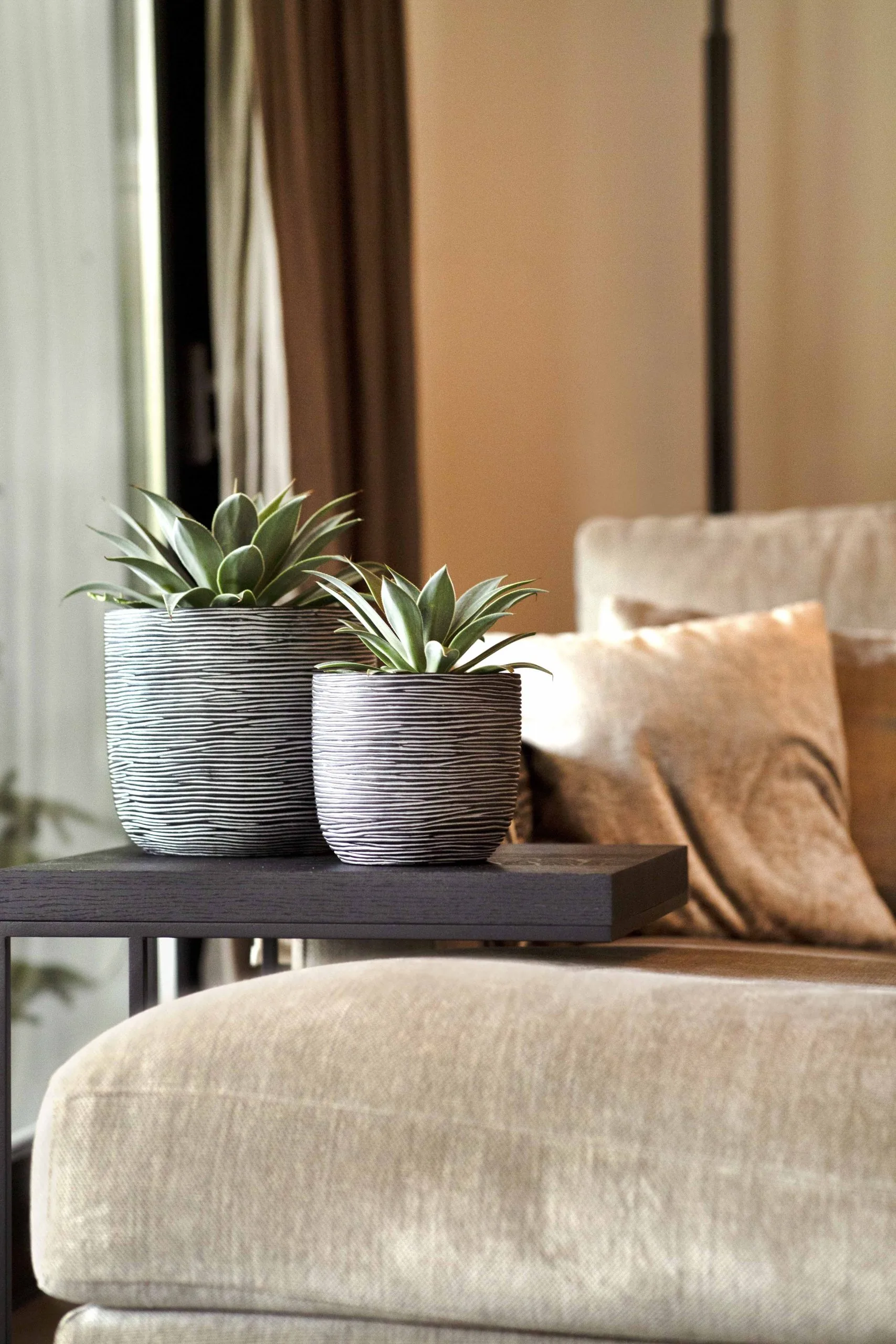 A lightweight planter with a Rib pattern on the body which is taken from nature. This pot is designed for indoor use only so comes with a solid bottom but it is not guaranteed to be 100% watertight so the use of a planter inner is advised. Each pot is handmade which makes it unique and comes with a 3-year Warranty against production errors.