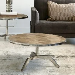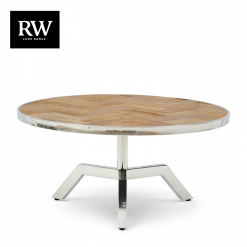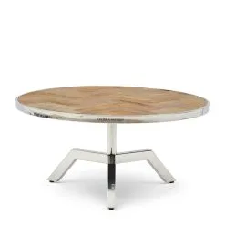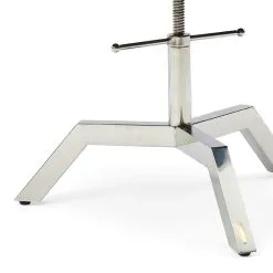 The height of this coffee table can be adjusted to anywhere between 40 and 50 centimetres by twisting the top up or down. For an eyecatching effect, place multiple tables next to each other at different heights. The top is made of elm from old doors, and has a herringbone pattern and decorative stainless steel edging. The innovative frame is also stainless steel.