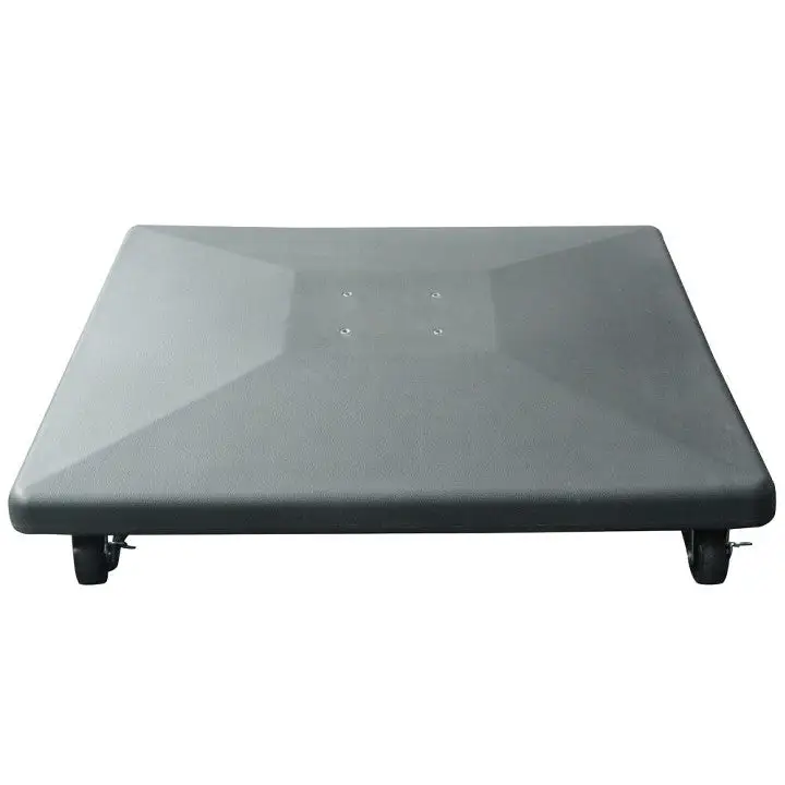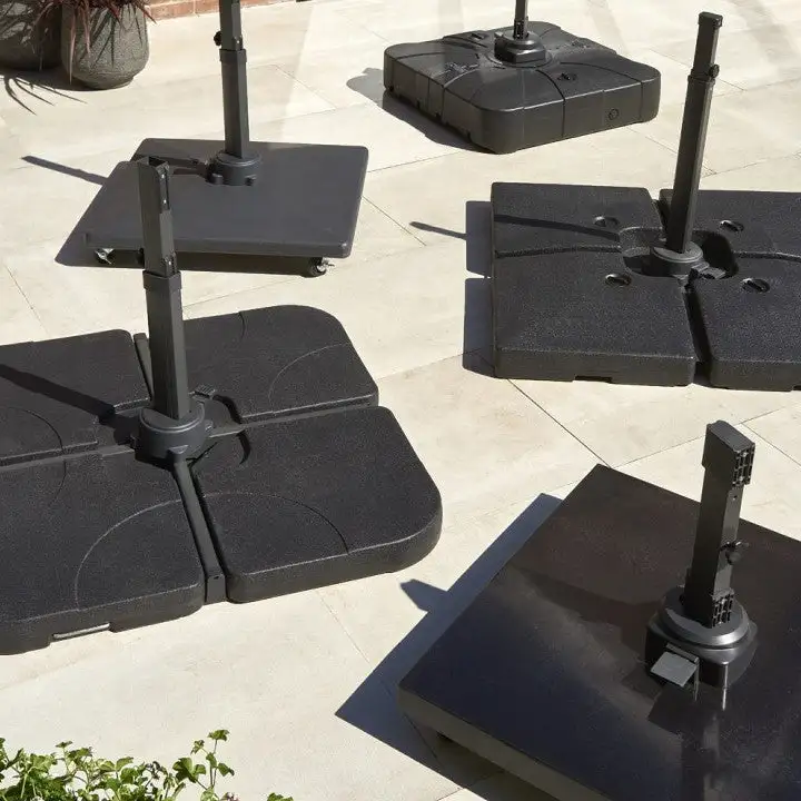 Four strong wheels allow for simple and secure manoeuvring whether or not your parasol is open. exquisite black plastic coating. Discreet wheels.