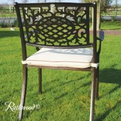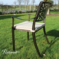 The Lyon 8 Seat is our best-selling cast aluminium set because it’s durable, practical and stylish and comes with a built-in Lazy Susan making it perfect for your outdoor area. It is made from cast aluminium with a highly attractive hammered bronze finish and is complete with cream seat cushions. It needs little or no maintenance and is completely rust-free! The chairs stack making them convenient for storage and the cushion covers are machine washable.