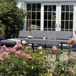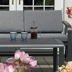 The Malmo Aluminium Corner Coffee Set is perfect for your garden or patio. Its one-of-a-kind design allows you to lounge on it, making it ideal for a casual drink on a sunny day. This set’s frame is made of aluminium, which will not rust and can be left outside throughout the year. The cushions are machine washable and made from high-quality UV-protected & weatherproof materials. This set is low-maintenance, making it an excellent addition to your home!