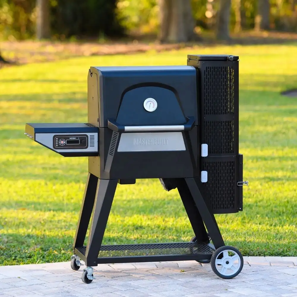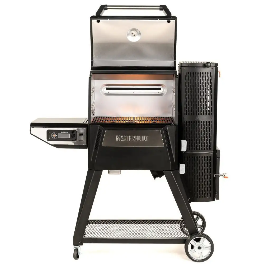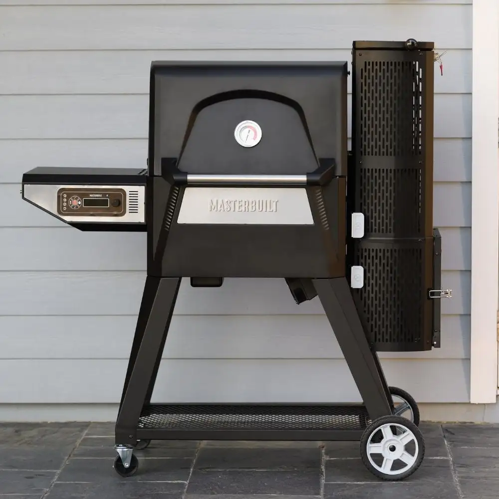 With the Gravity Series™ 560 Digital Charcoal Grill + Smoker by Masterbuilt, you can smoke, grill, sear, bake, roast and so much more. Set the temperature on the digital control panel or your smart device and the DigitalFan™ maintains the desired cooking temperature. The GravityFed™ charcoal hopper holds over 12 hours of charcoal and gravity ensures you have constant fuel to the fire. The reversible cast-iron grates are perfect for smoking or searing and in just 13 minutes this grill can reach 700°F. Master the art of charcoal grilling and smoking with Masterbuilt.
