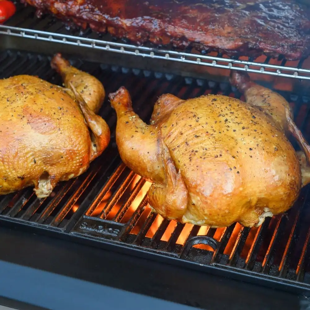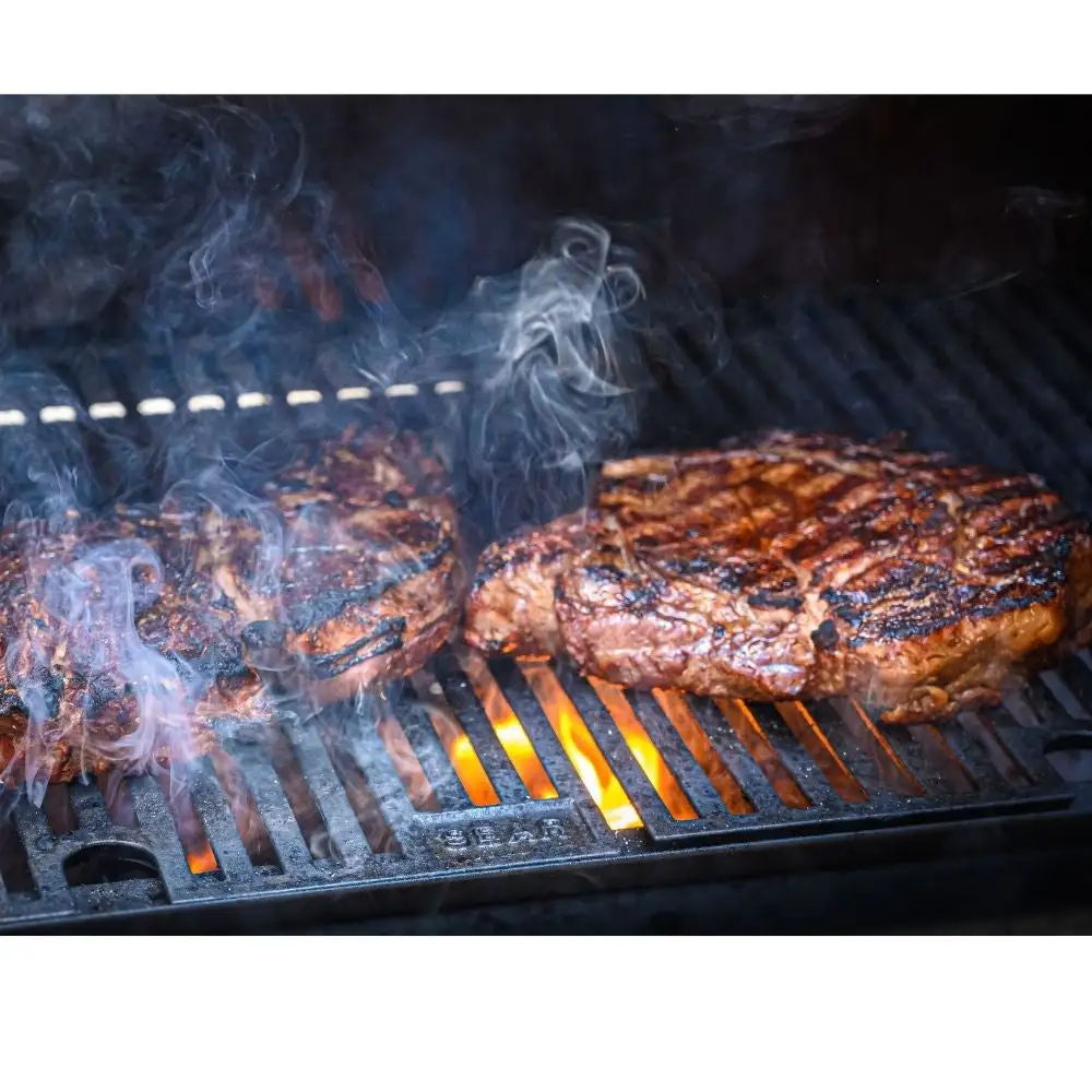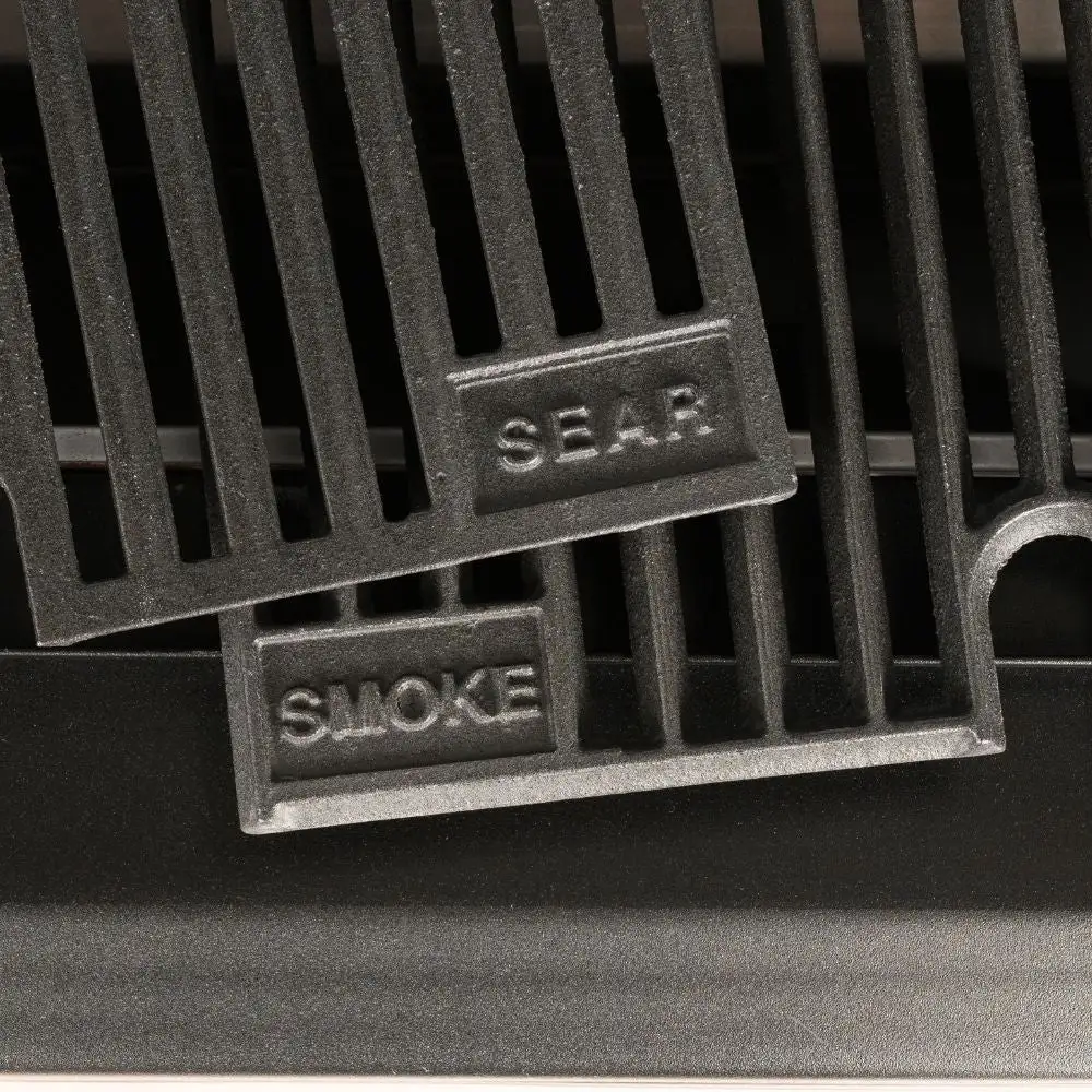 - Includes reversible smoke + sear cast-iron grates for low and slow smoking or high heat searing