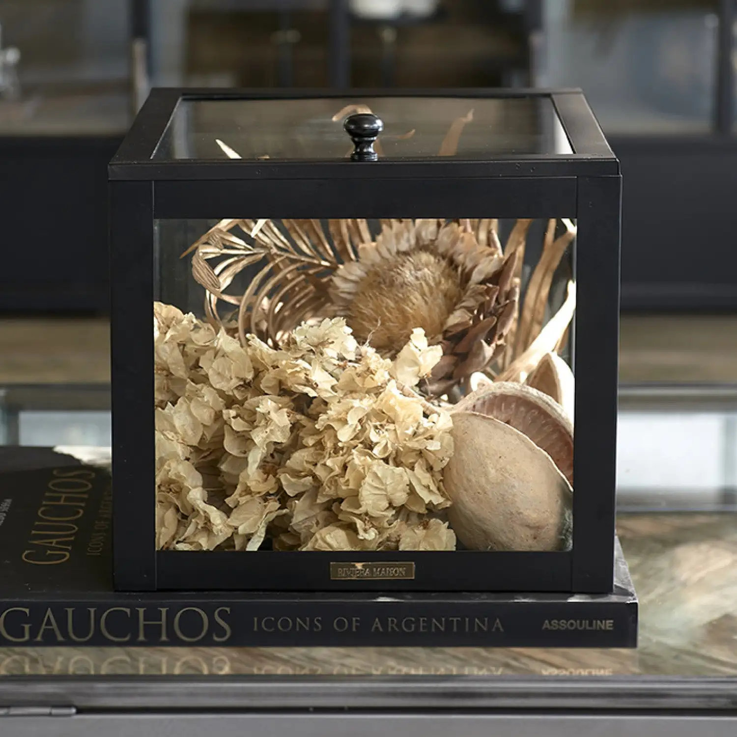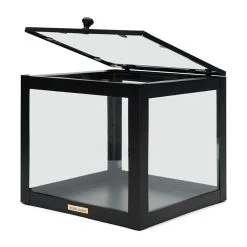 The All Time Favourite Storage Box lets you show off beautiful and precious belongings. Made from hand-crafted glass and tough, dark metal, it measures 30 by 30 centimetres and therefore has space for larger items. Available in different versions.
