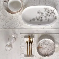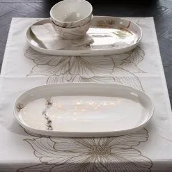 This serving plate, from the Les Fleurs range, is a gorgeous oval white porcelain serving plate and features a chic print with flowers in gold and is perfect for serving snacks, sandwiches or a salad. It is best to wash this richly decorated tableware by hand to keep it beautiful for a long time to come.